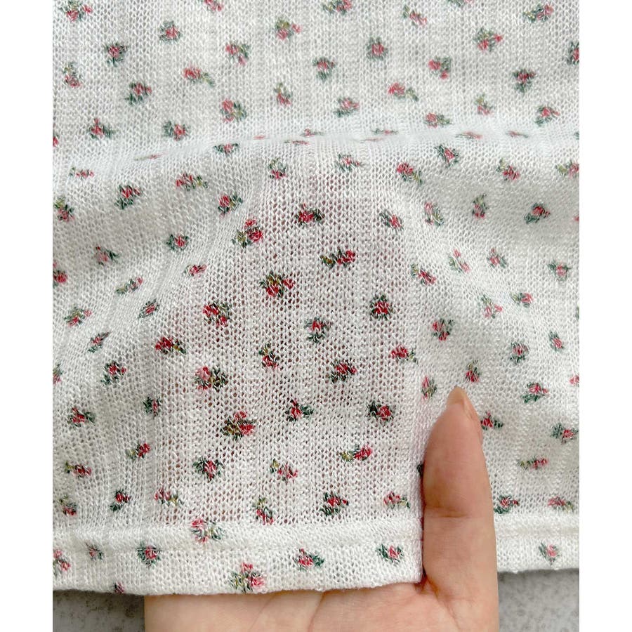 【2026SS新作】小花柄透かし編みニットカーディガン リブキャミソールセット