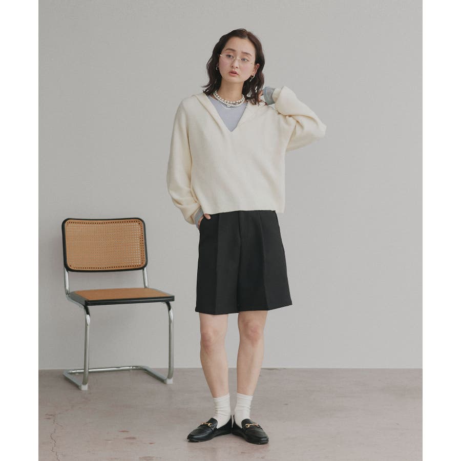 ・深めのVネックで旬のレイヤードスタイルが完成