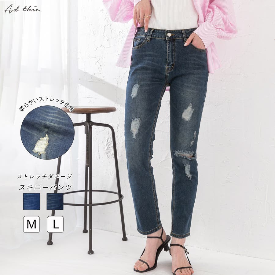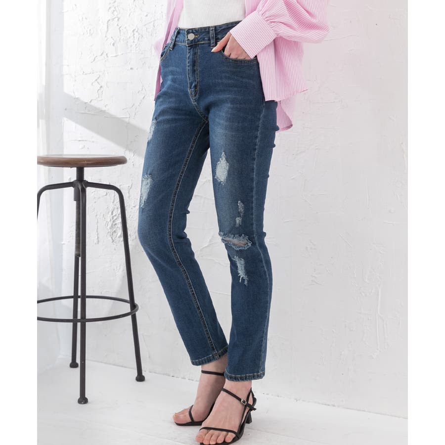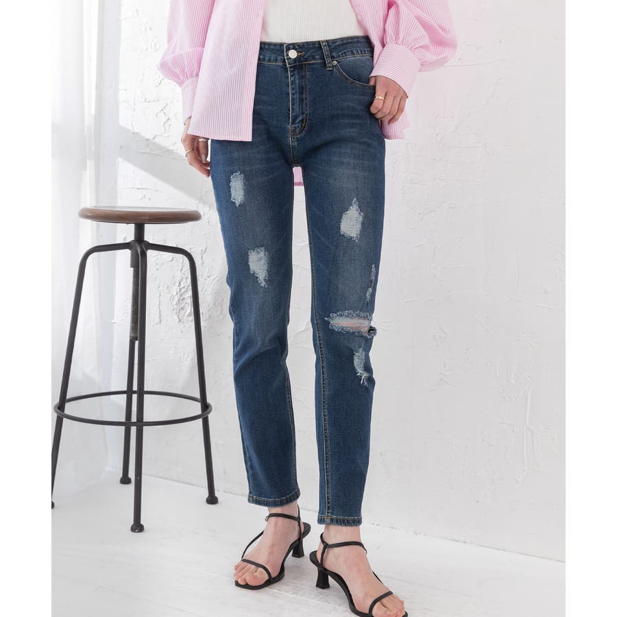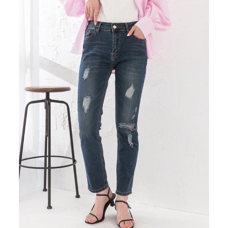 春 春コーデ 春ファッション 春服 夏 夏コーデ 夏ファッション 夏服 カジュアル カジュアルコーデ 大人 大人カジュアル オフィスカジュアル オフィス オフィスファッション オフィススタイル 韓国 韓国ファッション 韓国コーデ プチプラ プチプラファッション レディース Y2K 量産型 デニム ダメージデニム スキニー スキニーデニム ストレッチ ストレッチデニム ボトムス ブルー ブルーデニム ネイビー ネイビーデニム ダメージ加工 美脚 スッキリ 細見え スタイルアップ