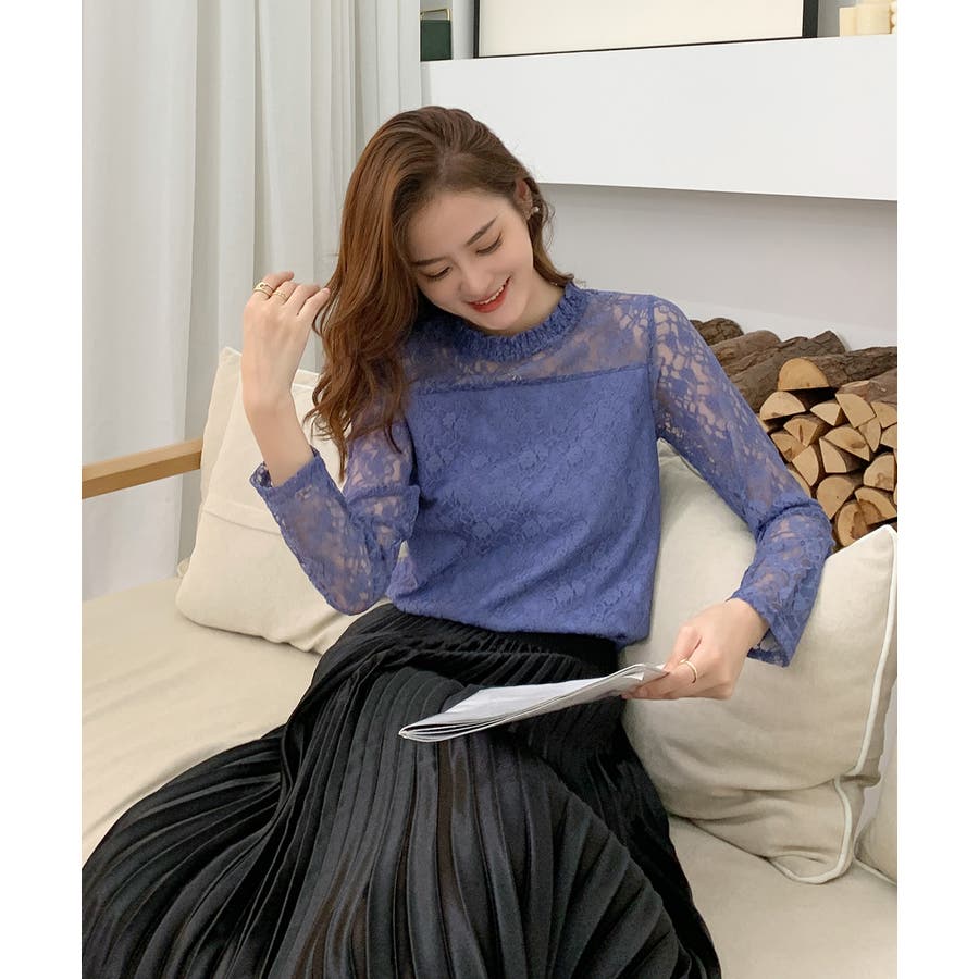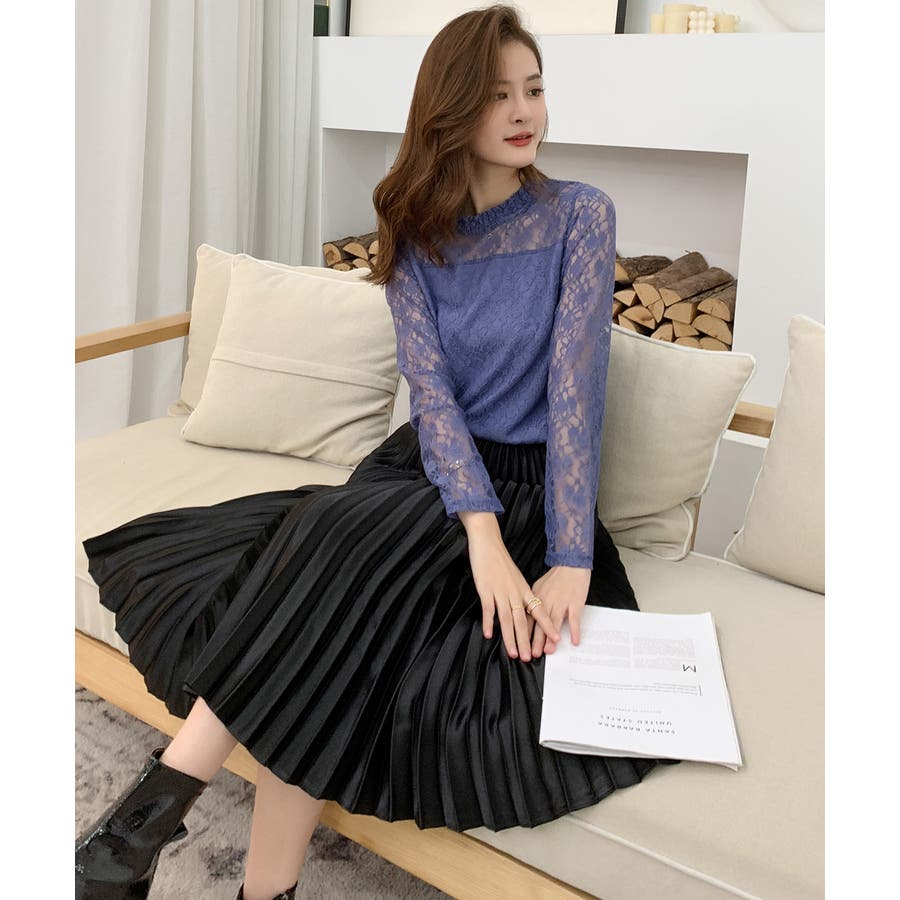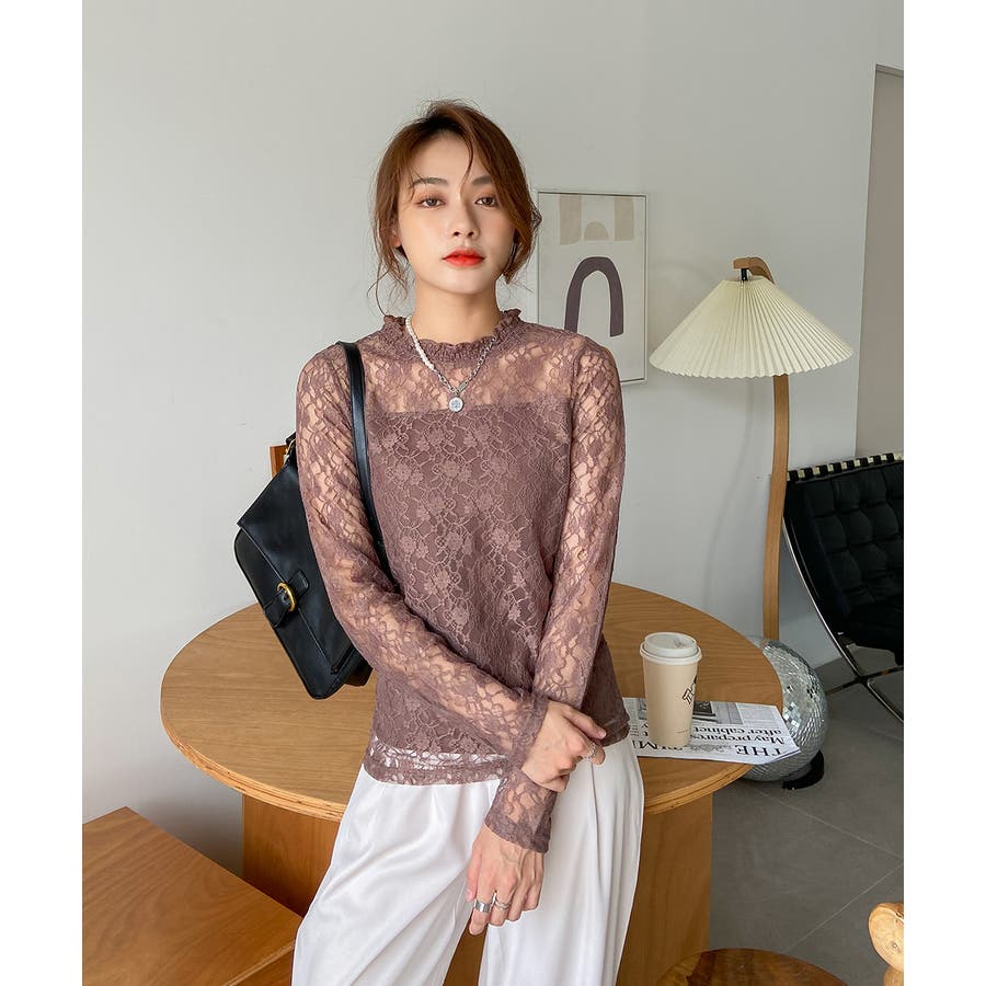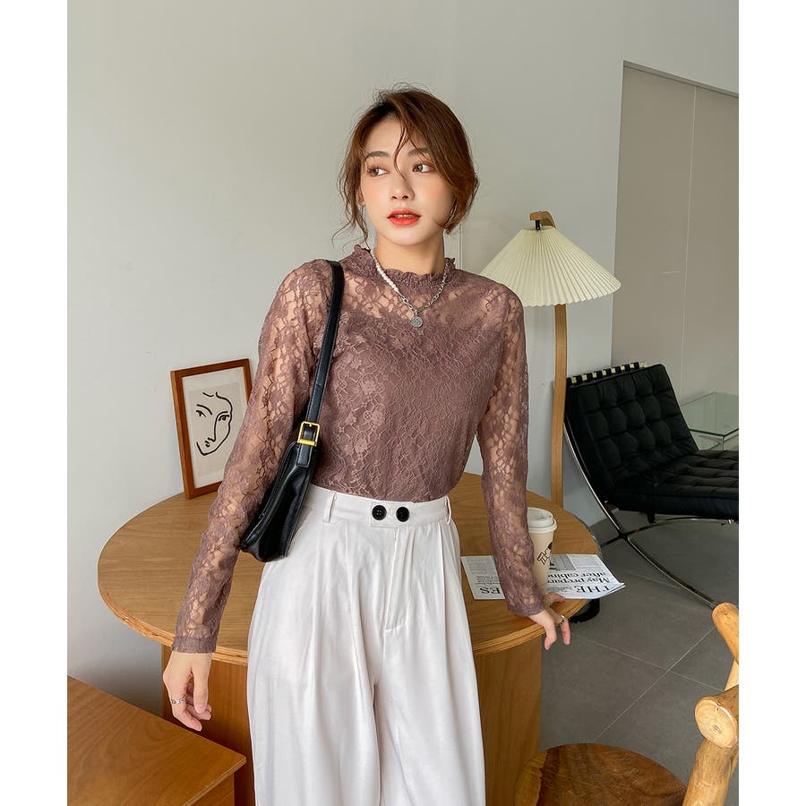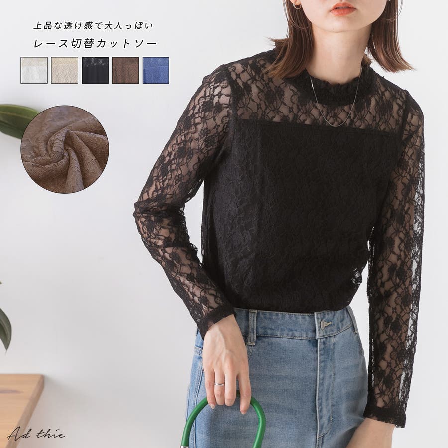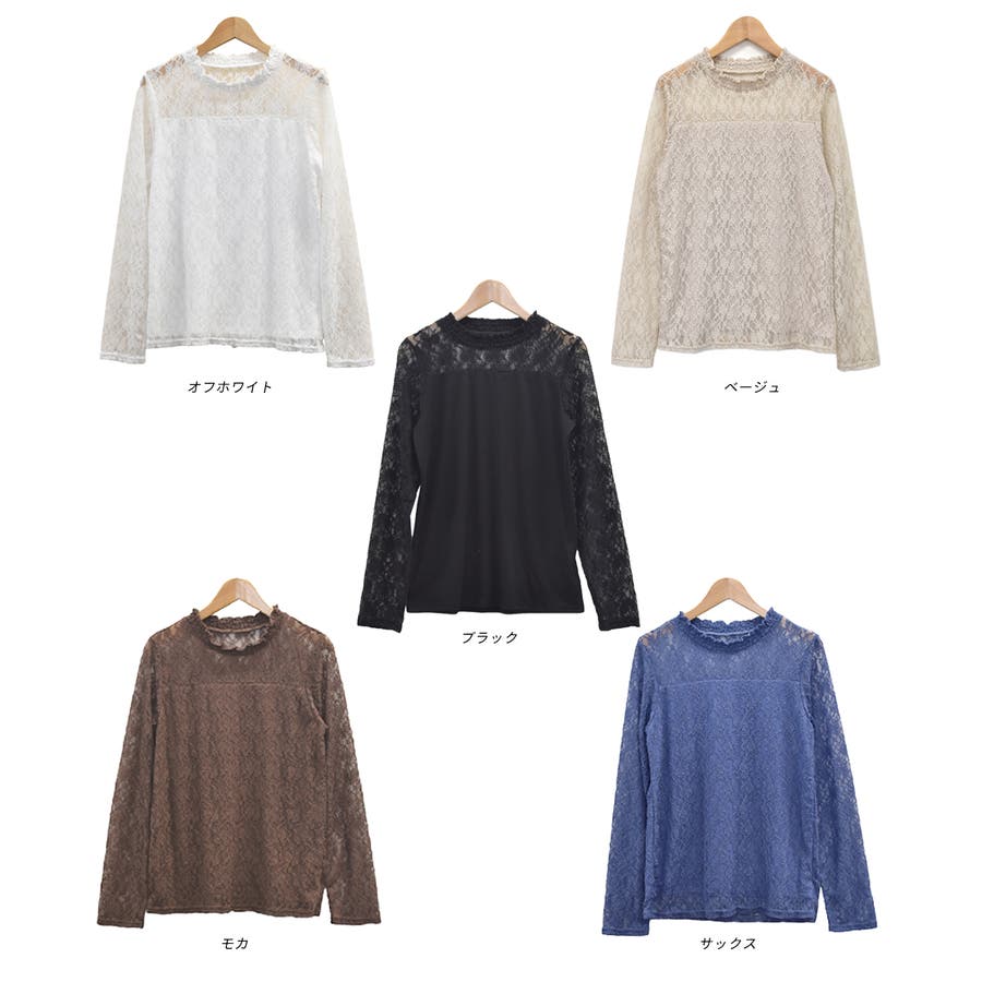 レースロングTシャツ ロンT トップス インナー シアー素材 レディース