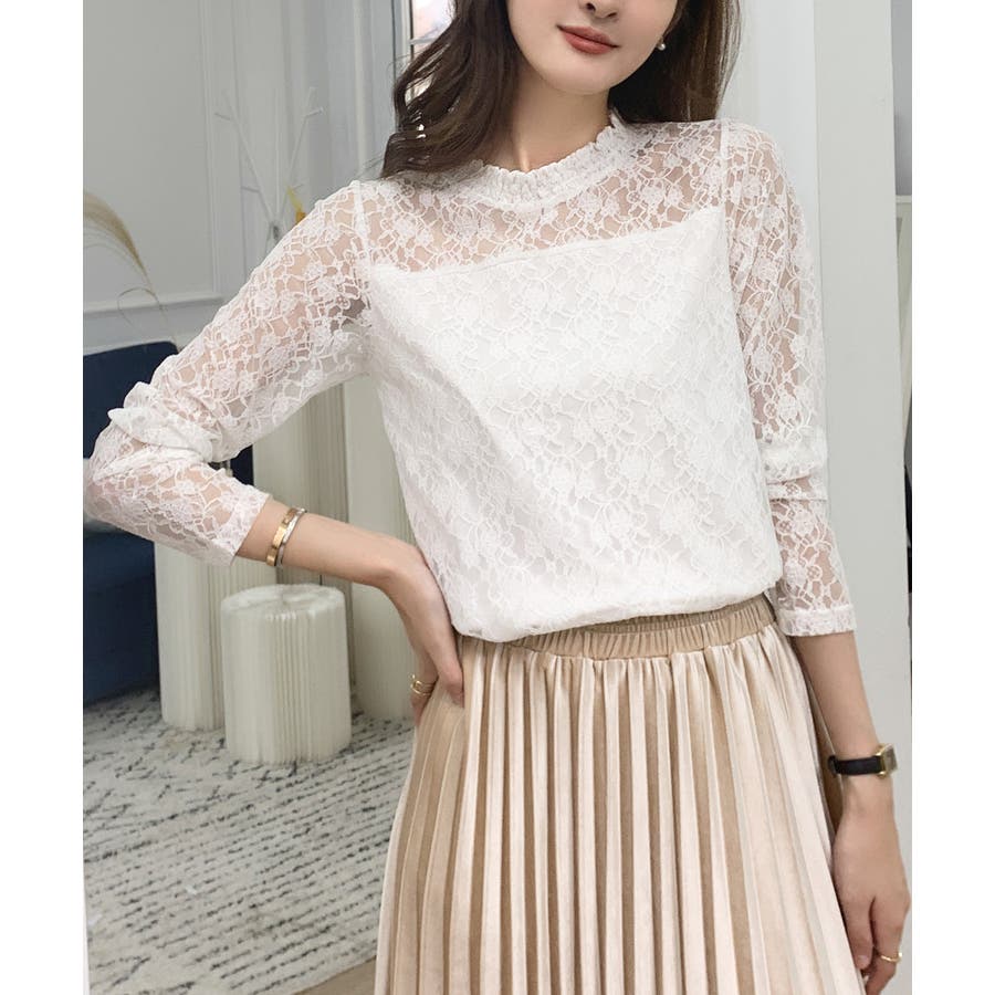 総レースで女性らしくインナーはカットソー素材で着心地がいい