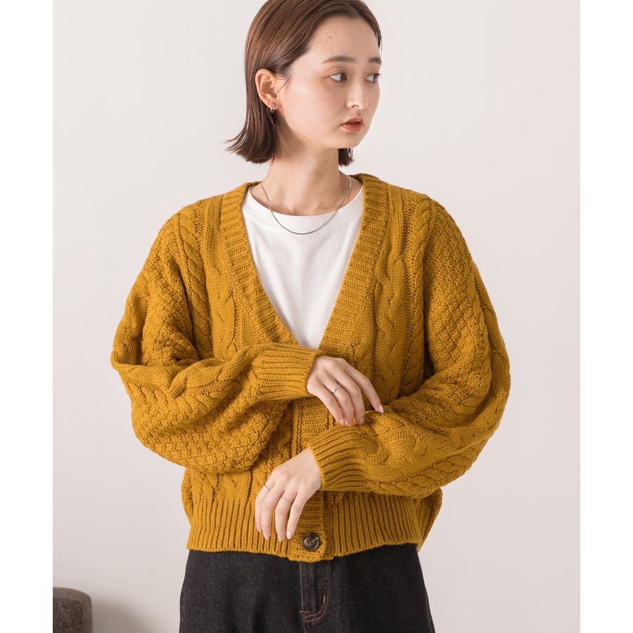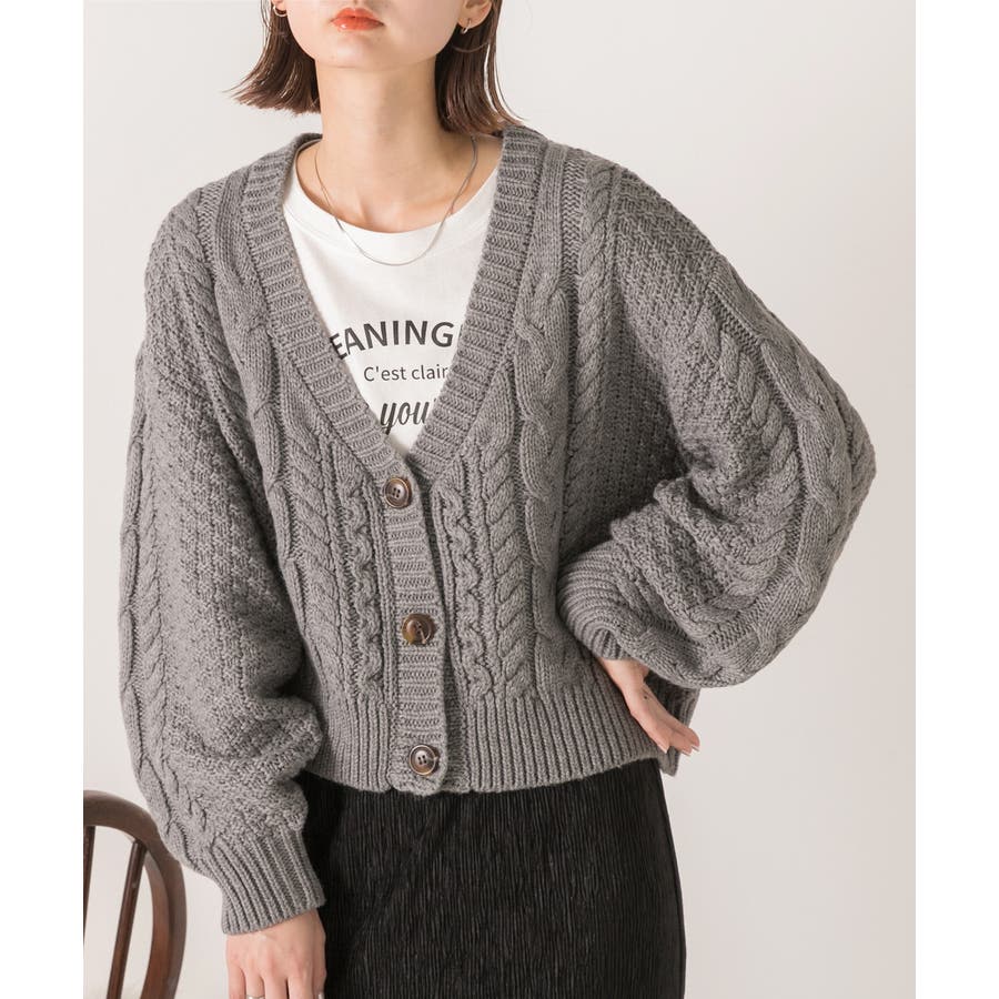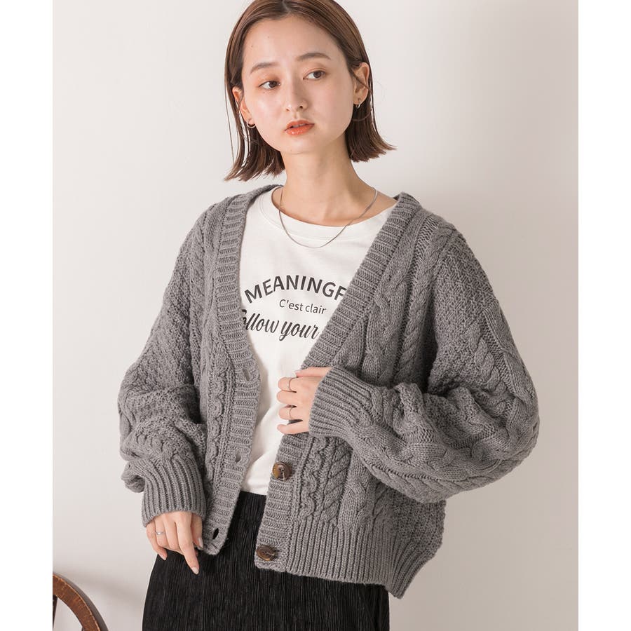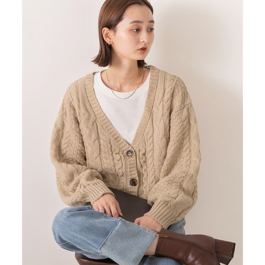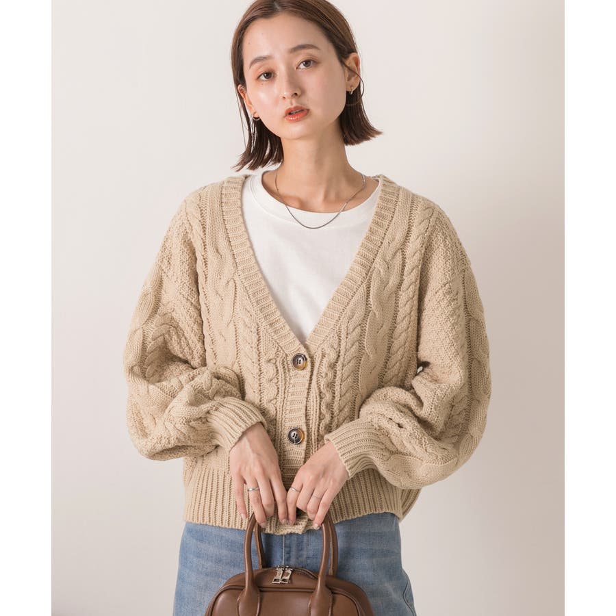 ボリュームスリーブ ケーブルニットカーディガン