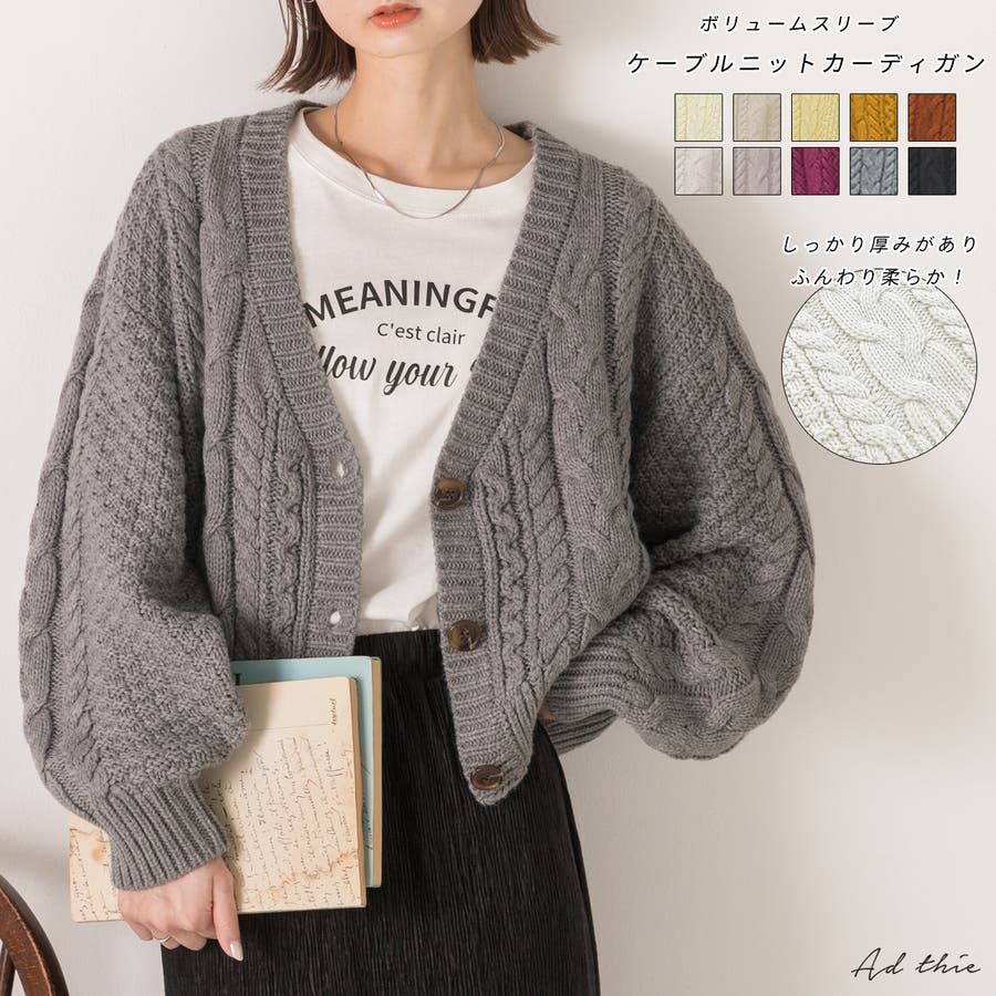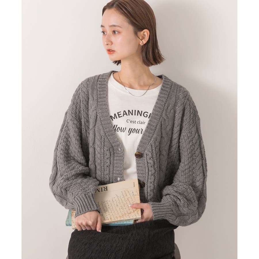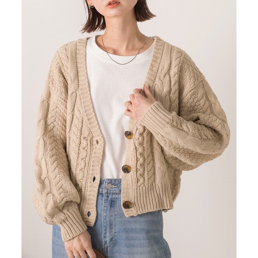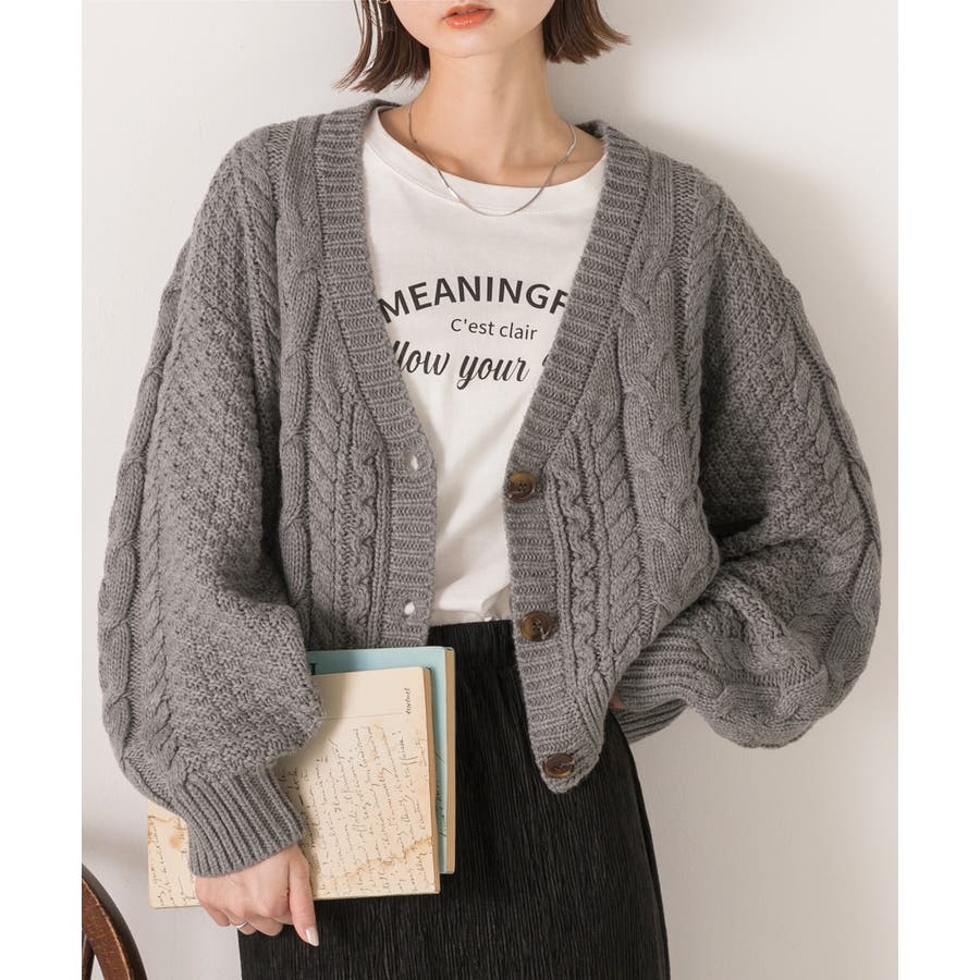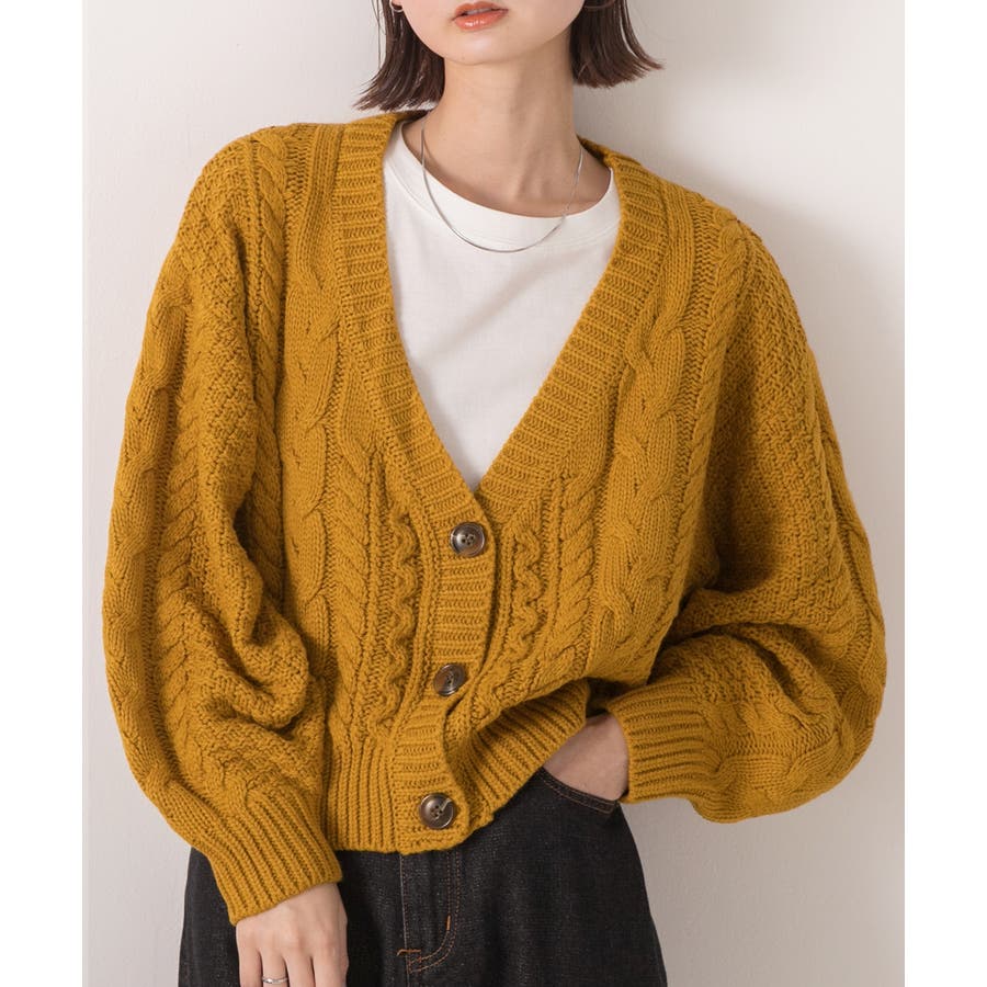 ボリュームスリーブ ケーブルニットカーディガン