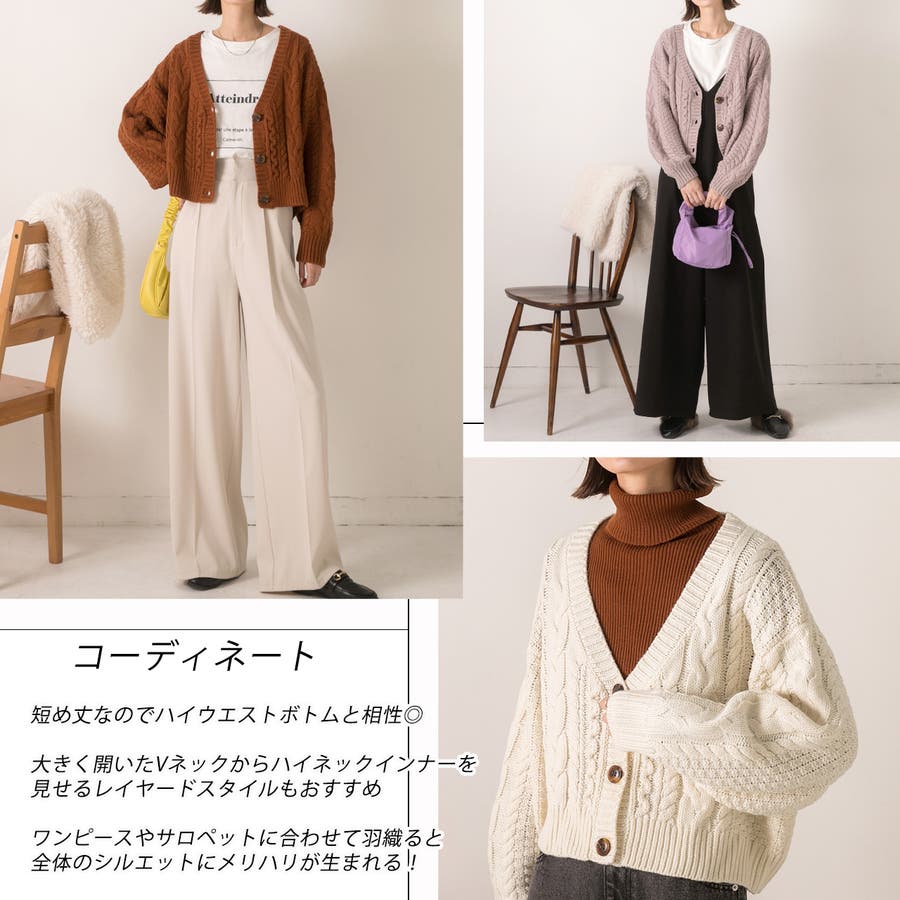 春 春コーデ 春ファッション 春服 冬 冬コーデ 冬ファッション 冬服 カジュアル カジュアルコーデ 大人 大人カジュアル オフィスカジュアル オフィス オフィスファッション オフィススタイル 韓国 韓国ファッション 韓国コーデ プチプラ プチプラファッション レディース Y2K 量産型 キレイめ 綺麗め きれい きちんと ケーブル ケーブルニット 袖ボリューム ざっくりニット Vネックニット ショート丈 ショート丈カーディガン カーディガン ケーブルカーディガン ボリュームスリーブ ボリューム袖 ぽわん袖 ゆったり ベージュ オフ 白 ホワイト ブラウン 黒 ブラック ベージュ アイボリー キャメル ブラウン ピンク チャコール グレー イエロー