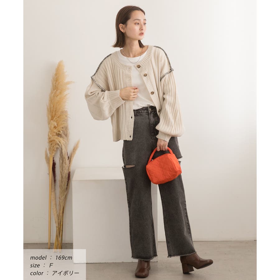 前後2WAYステッチカーディガン ニット 配色 ボタン 切替 レディース