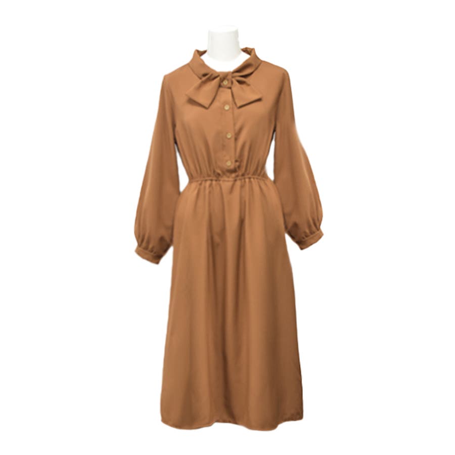 【キャメル】リボンシャツOP