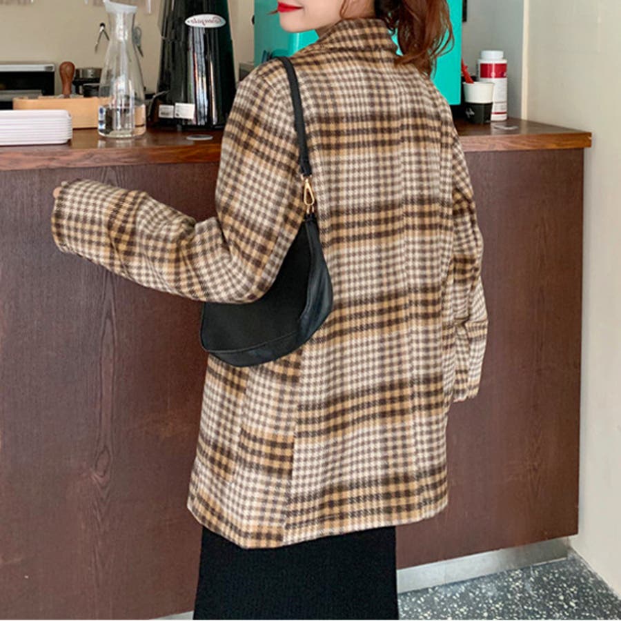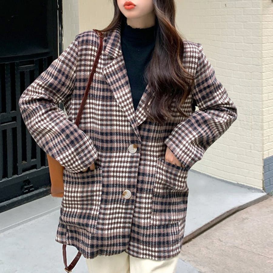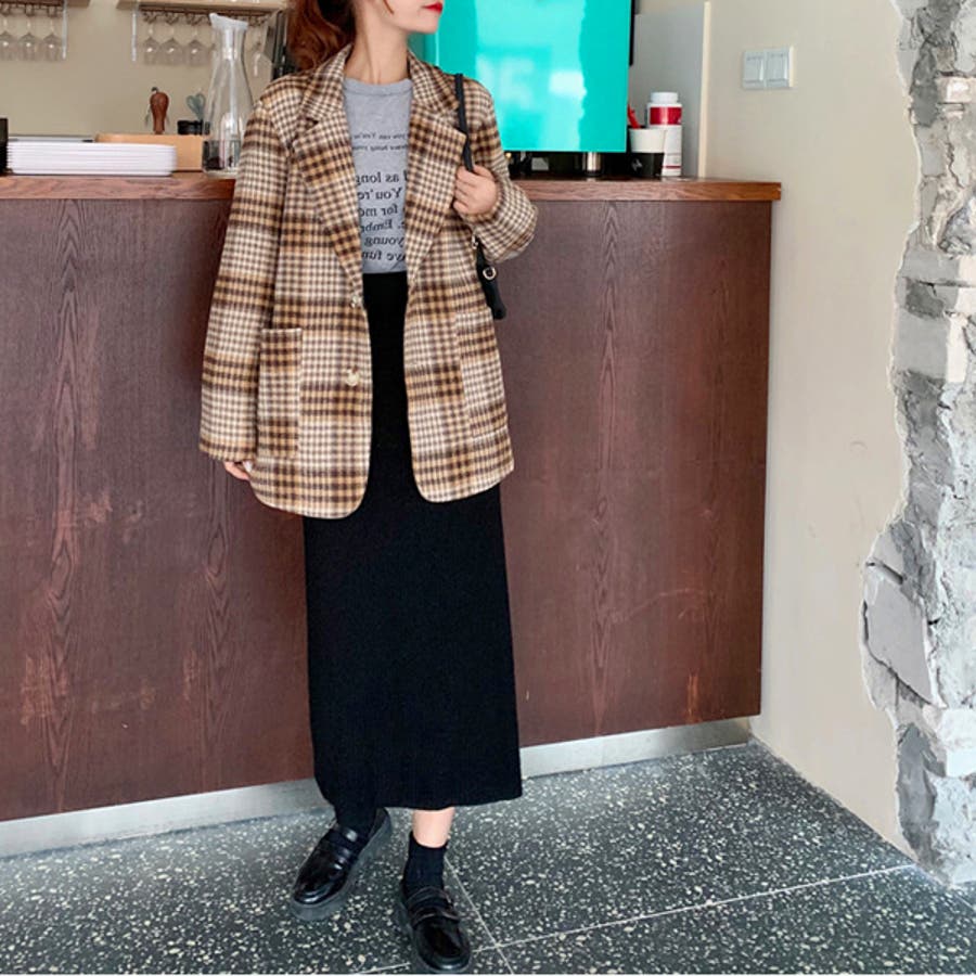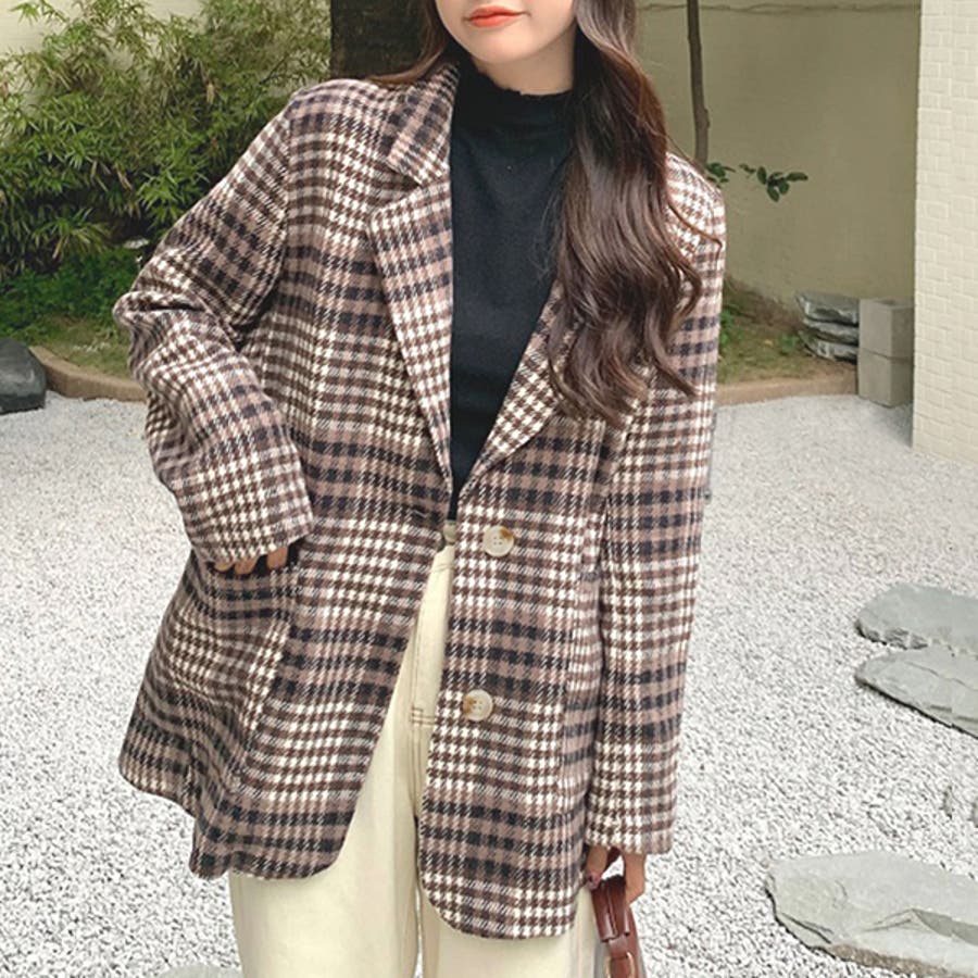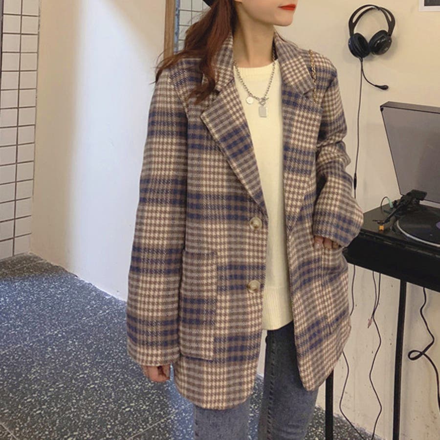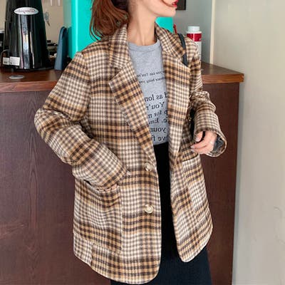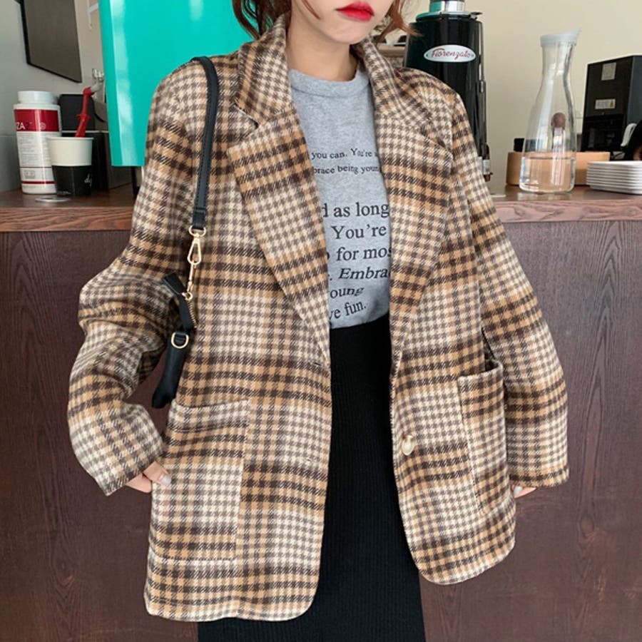秋 秋コーデ 秋ファッション 秋服 カジュアル カジュアルコーデ 大人 大人カジュアル オフィスカジュアル オフィス オフィスファッション オフィススタイル 韓国 韓国ファッション 韓国コーデ プチプラ プチプラファッション Y2K チェックジャケット チェックチェック 柄 グレン ダブルジャケット ジャケット ビック シルエット オーバーサイズ ゆったり 体型カバー ブルゾン シンプル シーズンムード オフィスカジュアル ジャケット OL オフィス 通勤 羽織る はおり オシャレ 可愛い かわいい 韓国 シャツ ブラウス 冬春 カーディガン 長袖 チェックコート レトロ ストリート スプリングコート ブラウン キャメル ブルー