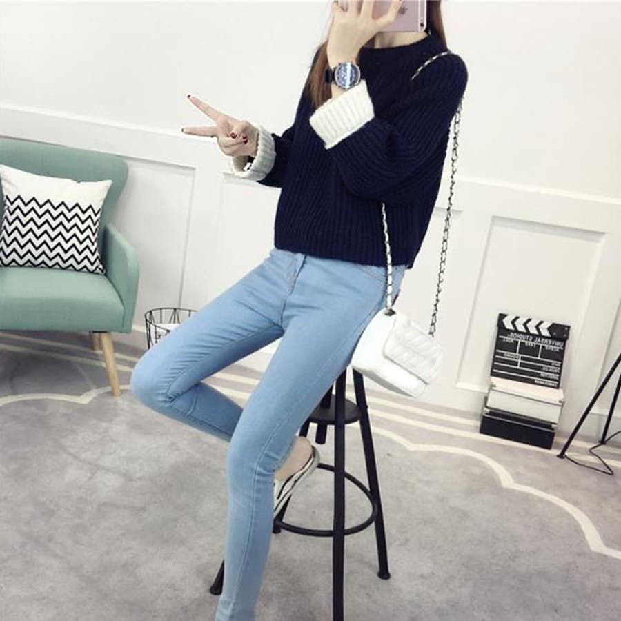 バイカラーが好みで購入しました。丈は短めですが袖は長めです。セーターなのに重くなく軽く着れて大満足です!