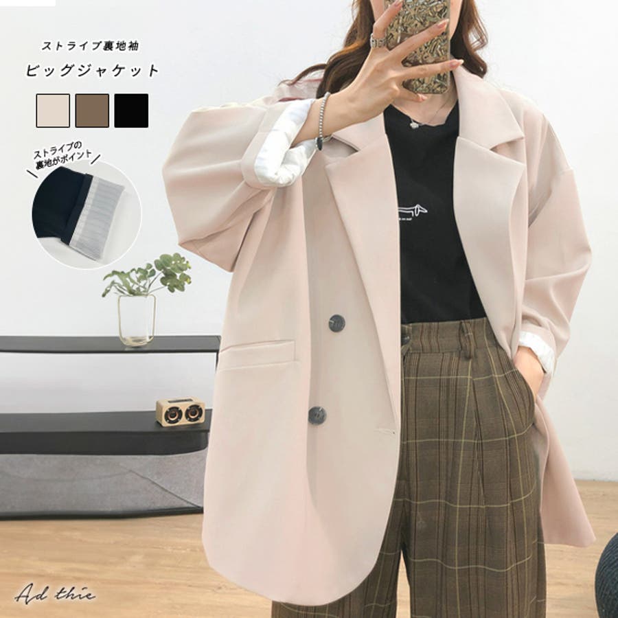 ビッグジャケット 裏地 ストライプ ポケット ボタン 春