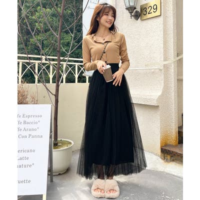 ふんわりエアリーなチュールを重ねて、程よく落ち感のあるシルエット◎