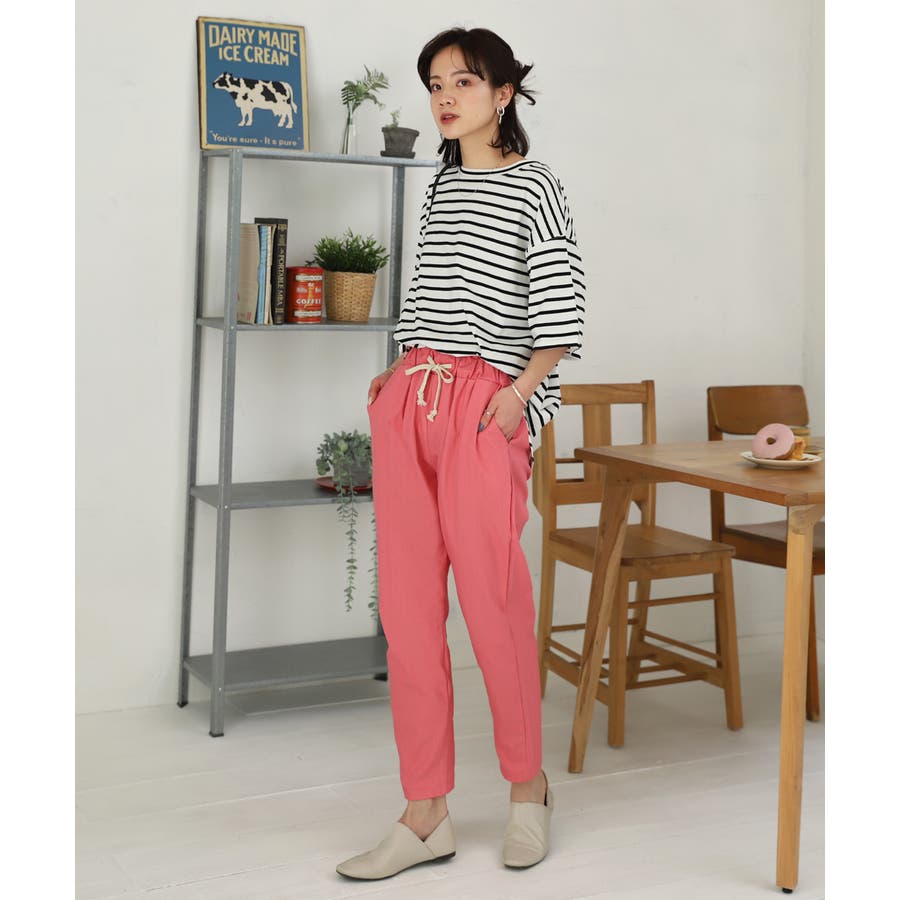 ウエストゴムクロップドカラーパンツ