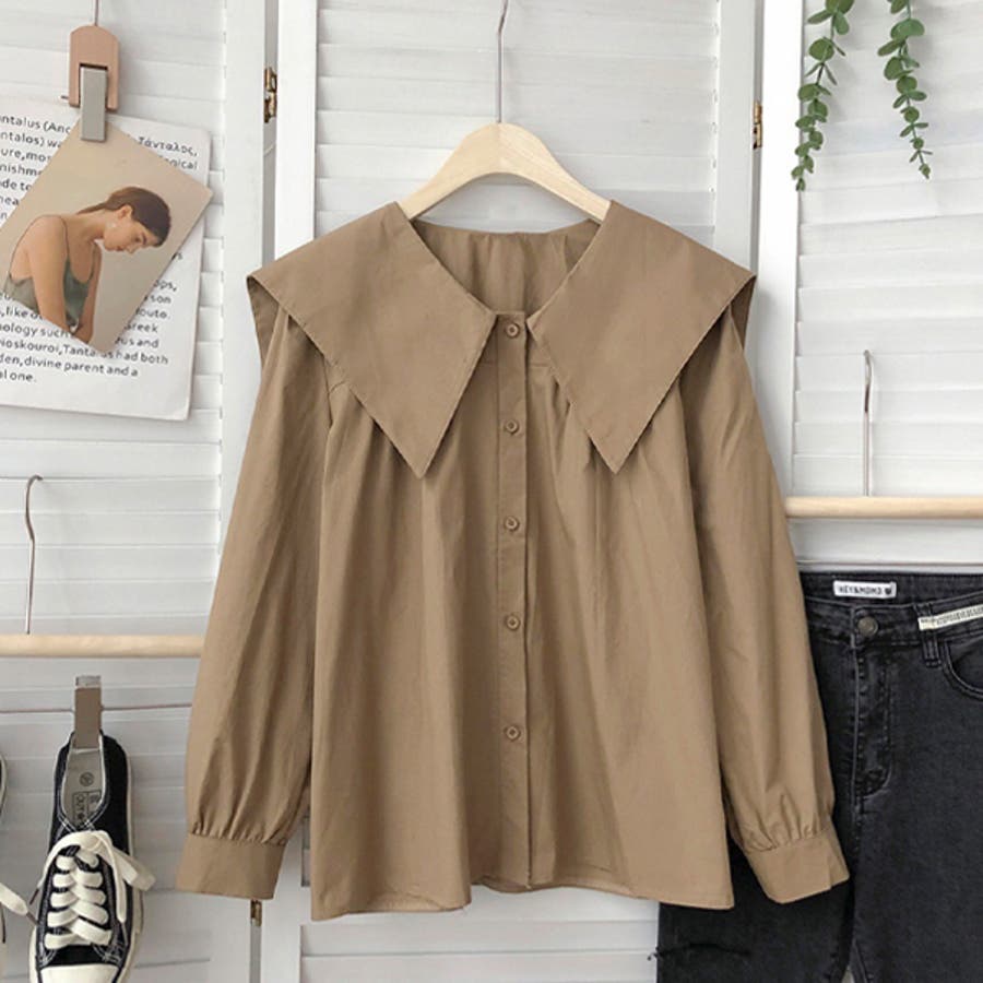 秋 秋コーデ 秋ファッション 秋服 夏 夏コーデ 夏ファッション 夏服 カジュアル カジュアルコーデ 大人 大人カジュアル オフィスカジュアル オフィス オフィスファッション オフィススタイル 韓国 韓国ファッション 韓国コーデ プチプラ プチプラファッション Y2K ビックカラー カラーブラウス レイヤー レイヤートップス 襟 ビック襟 ブラウス デザインブラウス シャツ 大きめ襟 フェミニン セーラー セーラーカラー 量産型 ブラウス 長袖 ブラウン アイボリーベージュオフ ホワイト 白 入卒 セレモニー パーティー