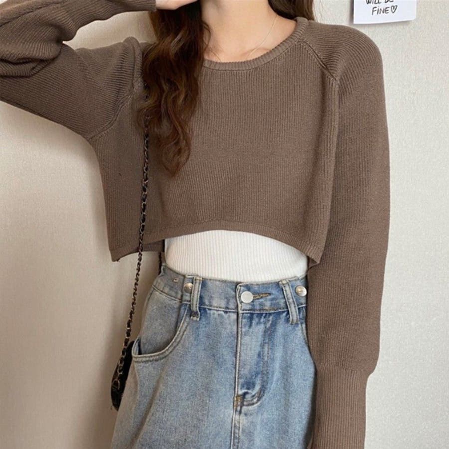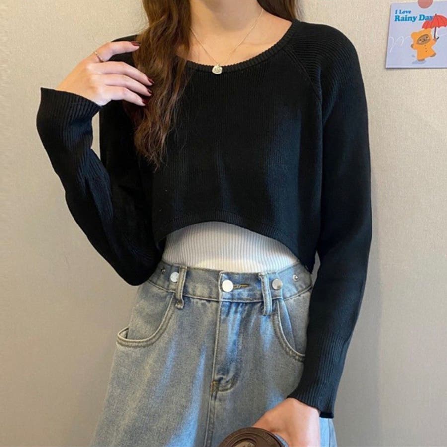 秋 秋コーデ 秋ファッション 秋服 夏 夏コーデ 夏ファッション 夏服 カジュアル カジュアルコーデ 大人 大人カジュアル オフィスカジュアル オフィス オフィスファッション オフィススタイル 韓国 韓国ファッション 韓国コーデ プチプラ プチプラファッション Y2K ラグラン ラグランスリーブ 後ろ下がり ショート ショート丈 ショートニット レイヤー レイヤーニット クルーネック 春 春ニット シンプル 重ね着 重ね着コーデ 韓国 韓国ファッション カジュアル 足長 足長効果 白 黒 ベージュ ブラウン ホワイト ブラック ホワイトニット ブラックニット