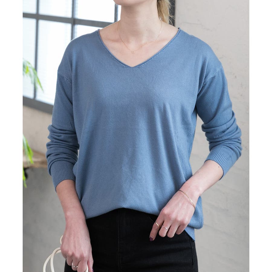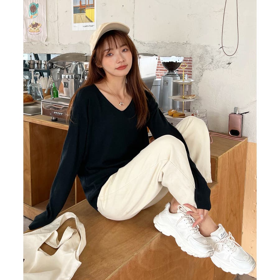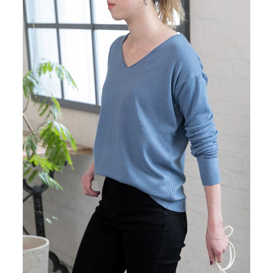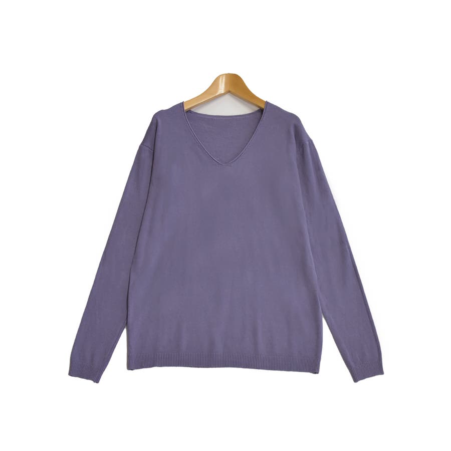チクチク感がなくゆったり着られ、けれど部屋着のようにだらんではないVネックニットを探していました。まさにイメージ通りの商品でした。ライトピンクと同時購入しました。同じ形でも色違いで印象が変わるため2色とも購入して良かったです。
