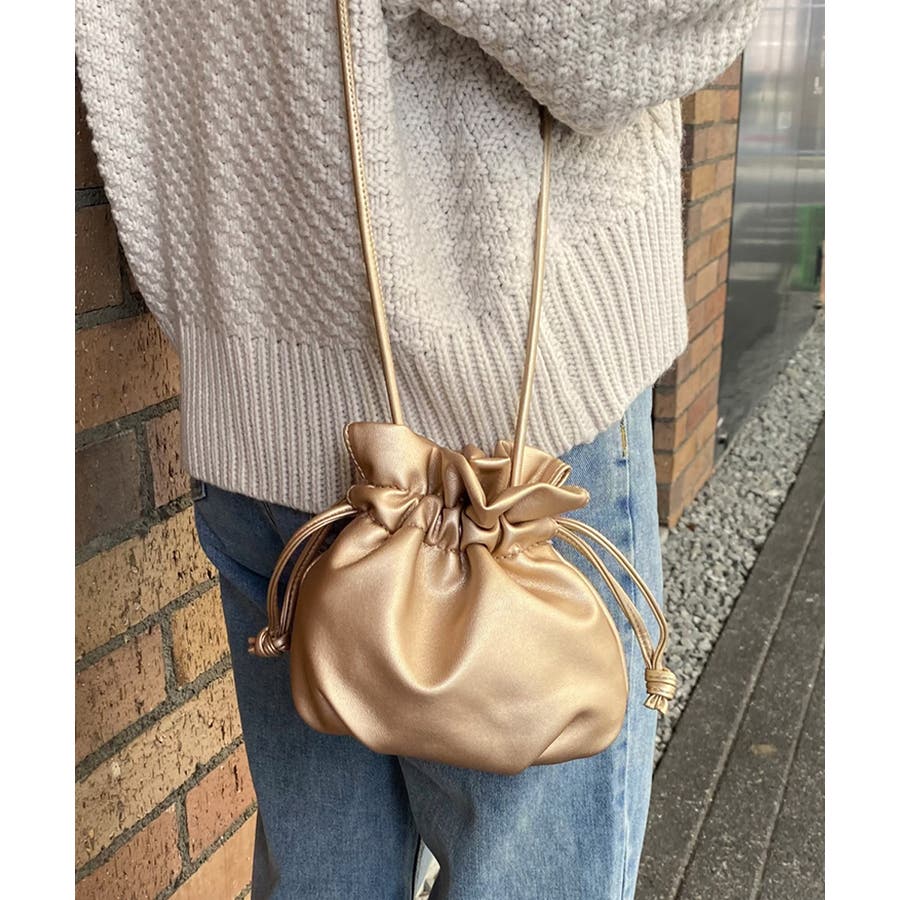 柔らかいフェイクレザー巾着バッグ