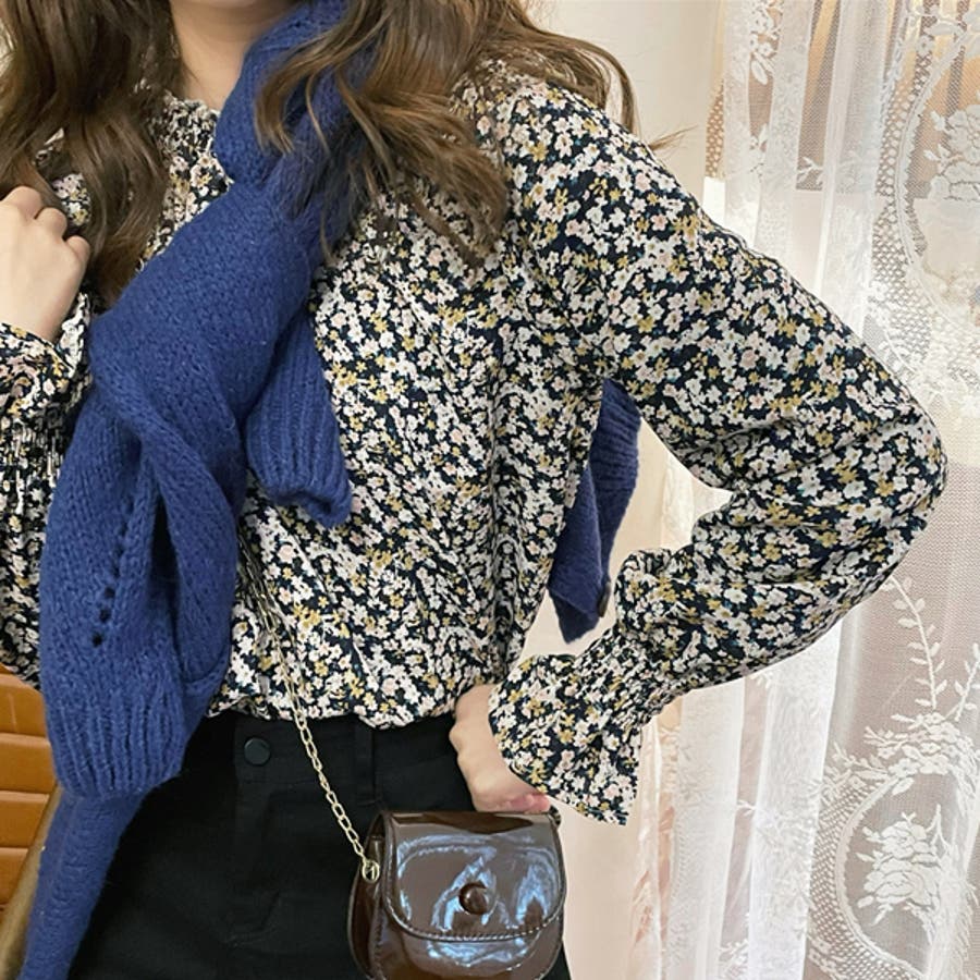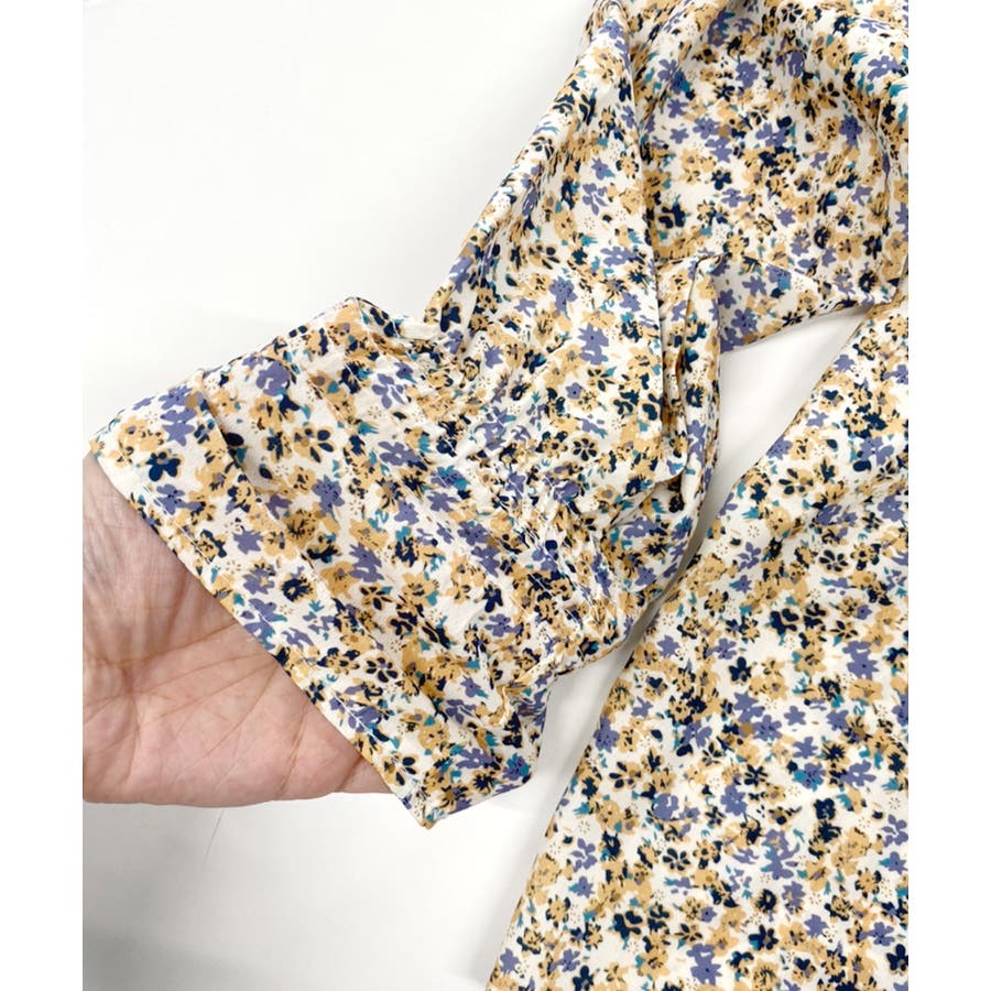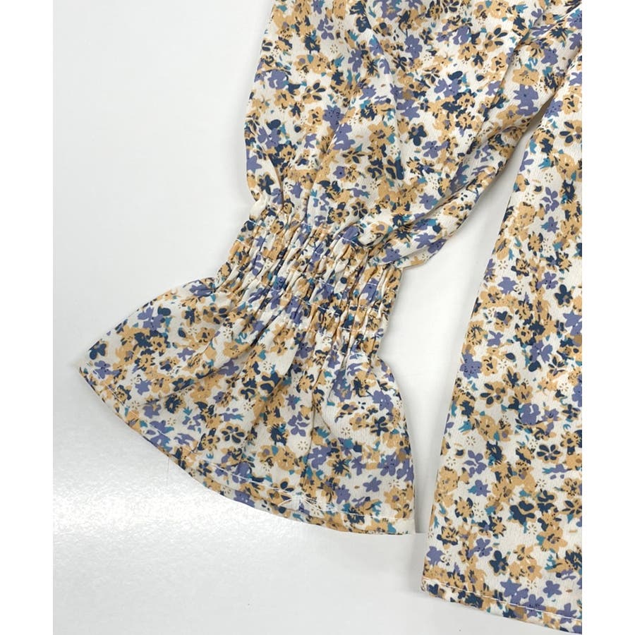 シャーリングスリーブ 小花柄 ブラウス