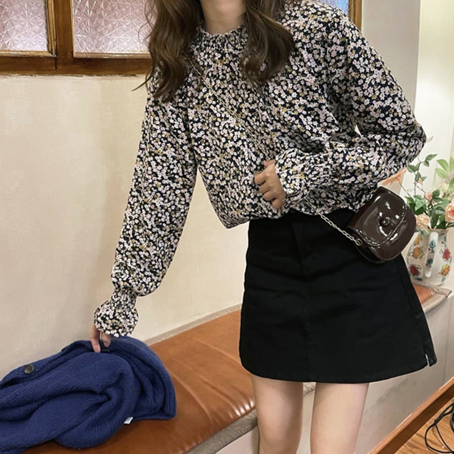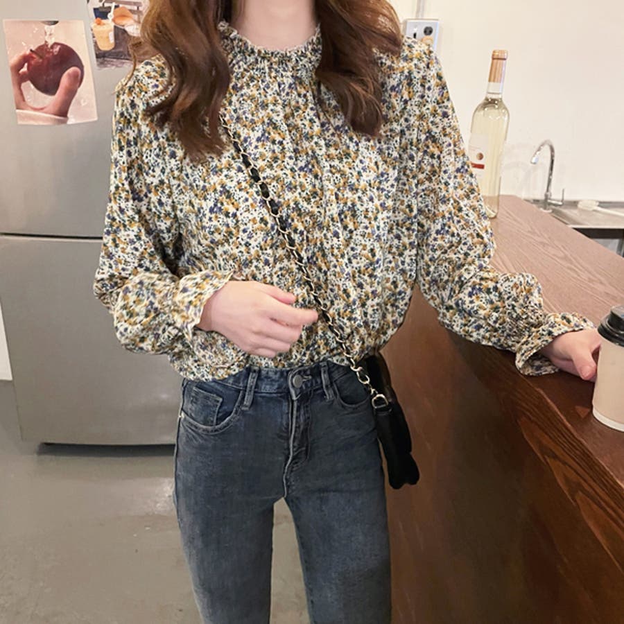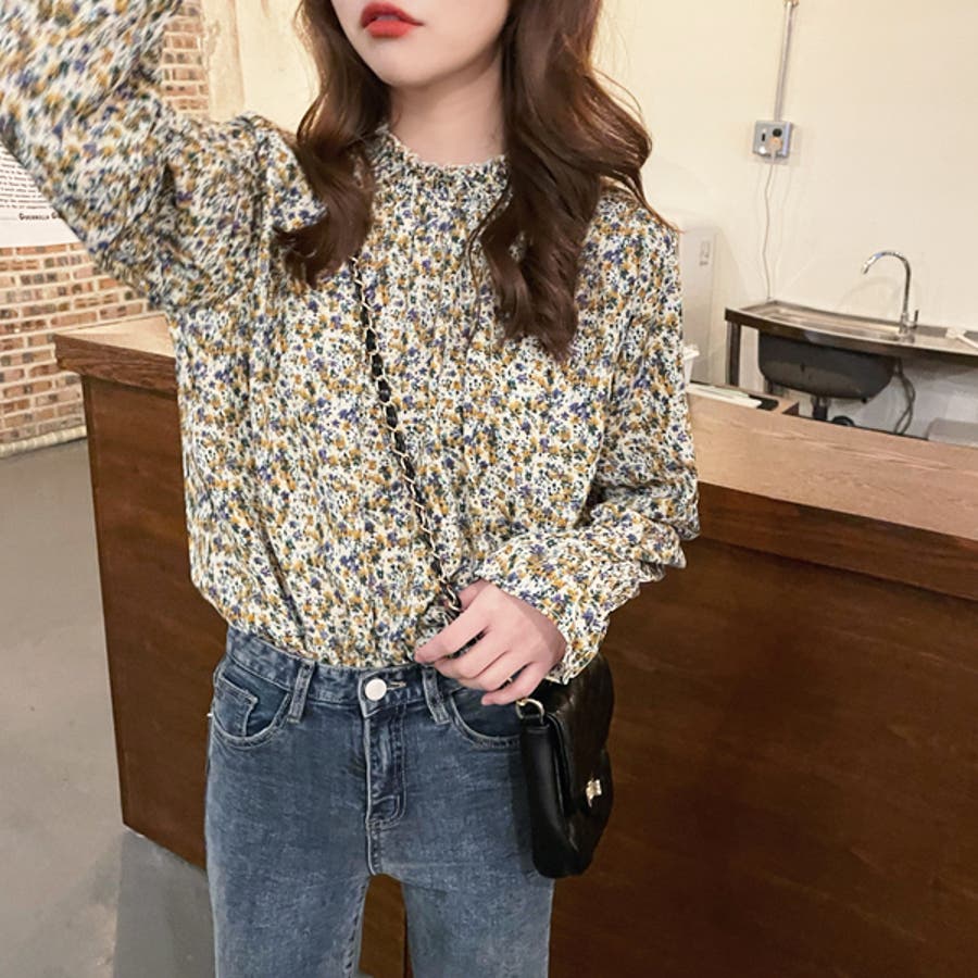 Y2K 春 春服 春コーデ 春ファッション スプリング スプリングコーデ 夏 夏コーデ 夏ファッション 夏服 カジュアル カジュアルコーデ 大人 大人カジュアル オフィスカジュアル オフィス オフィスファッション オフィススタイル 韓国 韓国ファッション 韓国コーデ プチプラ プチプラファッション ギャザー ギャザーブラウス 花柄 花柄ブラウス フェミニン フェミニンコーデ キャンディースリーブ 小花柄 小花柄ブラウス プチネック ハイネック ネックギャザー シャーリング フレアスリーブベージュ 青