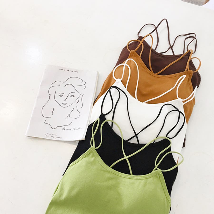 Y2K 春 春服 春コーデ 春ファッション スプリング スプリングコーデ 夏 夏コーデ 夏ファッション 夏服 カジュアル カジュアルコーデ 大人 大人カジュアル オフィスカジュアル オフィス オフィスファッション オフィススタイル 韓国 韓国ファッション 韓国コーデ プチプラ プチプラファッション カップ付き カップ付きキャミソール キャミソール インナー ブラ ブラトップ バック バッククロス 白 黒 赤 黄 緑 ボーダー 白キャミ 黒キャミ セクシー
