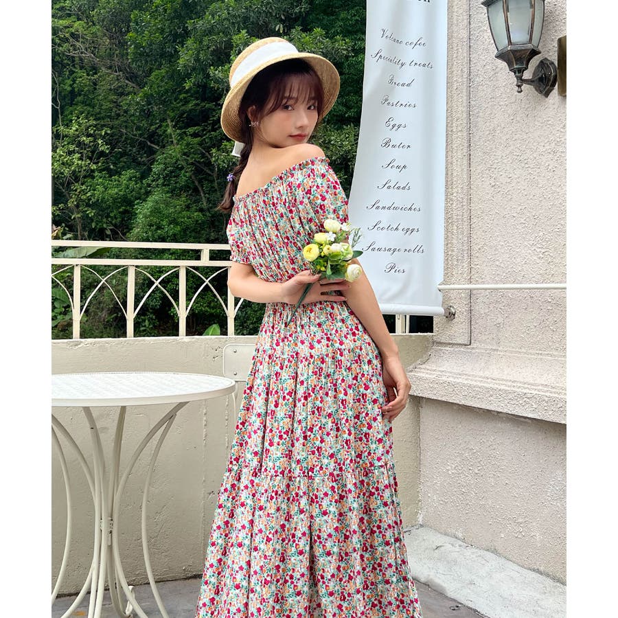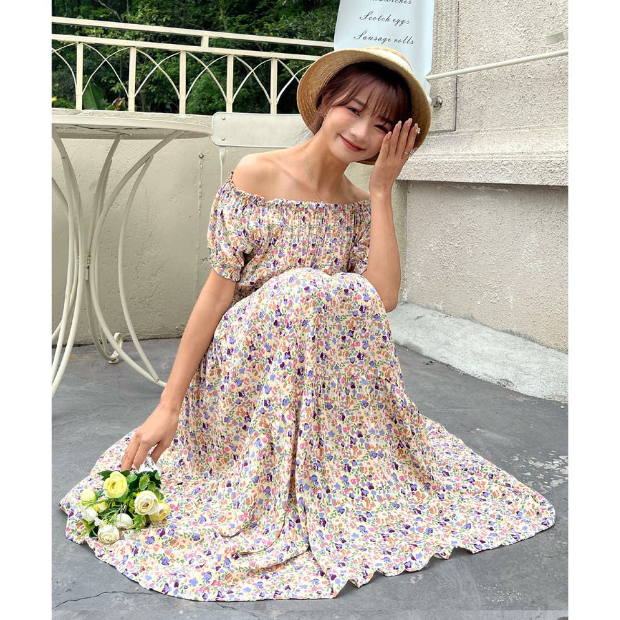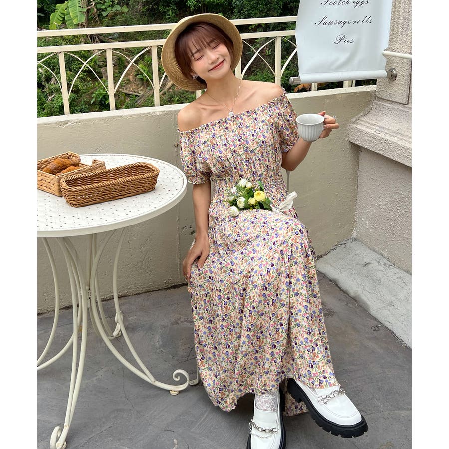Y2K 春 春服 春コーデ 春ファッション スプリング スプリングコーデ 夏 夏コーデ 夏ファッション 夏服 カジュアル カジュアルコーデ 大人 大人カジュアル オフィスカジュアル オフィス オフィスファッション オフィススタイル 韓国 韓国ファッション 韓国コーデ プチプラ プチプラファッション ワンピース ロングワンピース 小花柄 小花柄ワンピース オフショル オフショルワンピース ティアード ティアードワンピース ウエストマーク リボン ウエストリボン 袖フレア シフォン ふわっと 旅行 デイリー 普段 お出かけ 海 海水浴 プール 夏 夏ワンピース 韓国ワンピース ウエストゴム 楽ちん 楽 ピンク オレンジ イエロー パープル