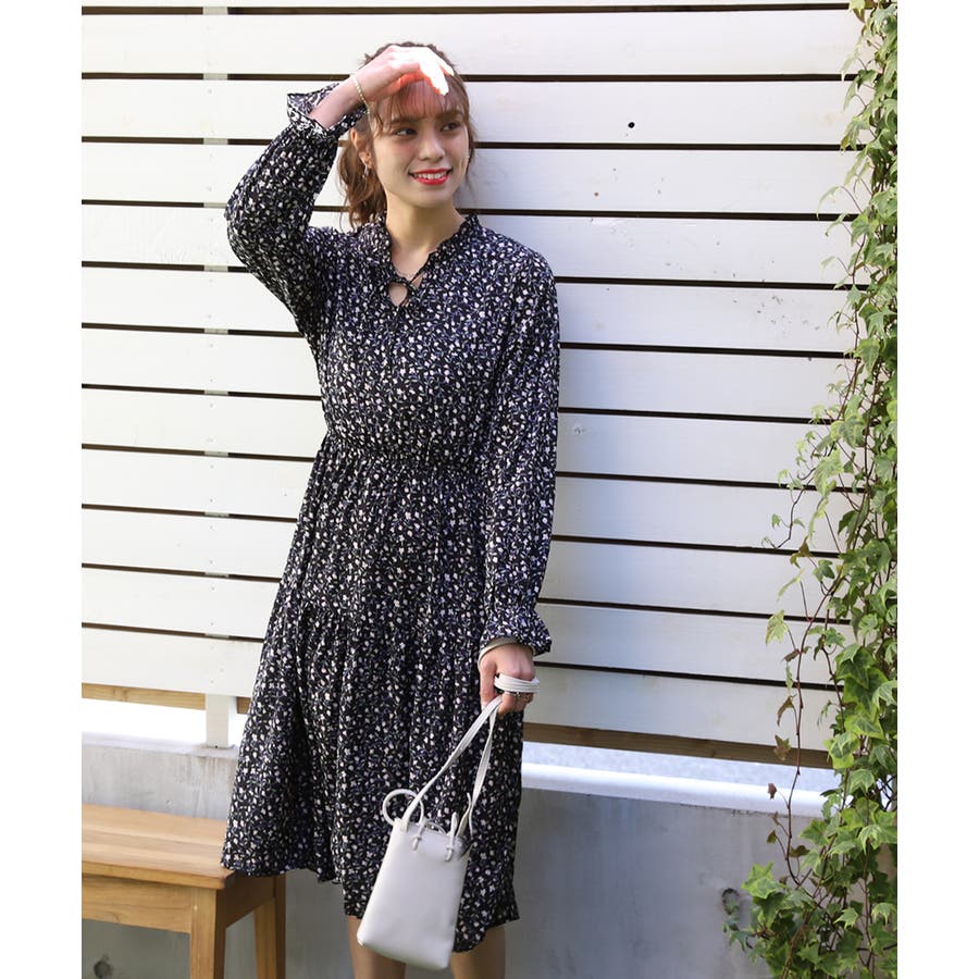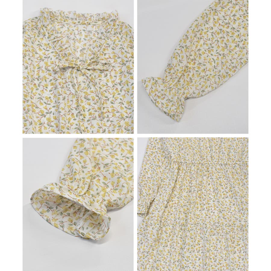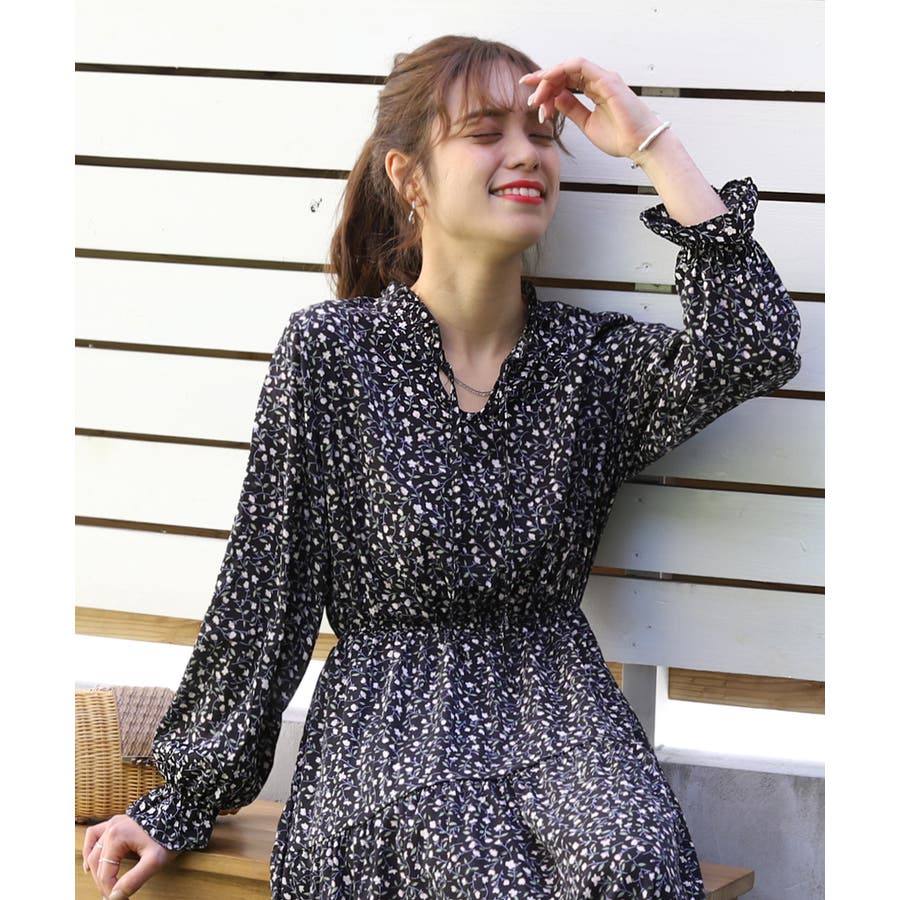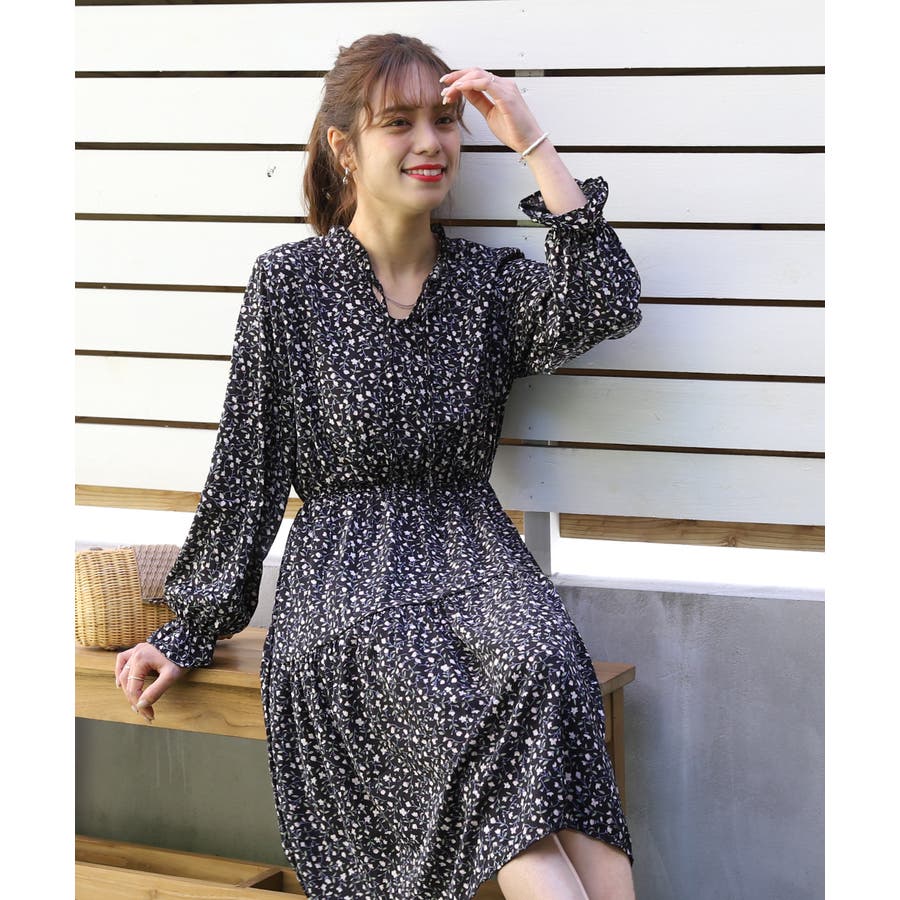 キャンディースリーブ小花柄長袖ワンピース