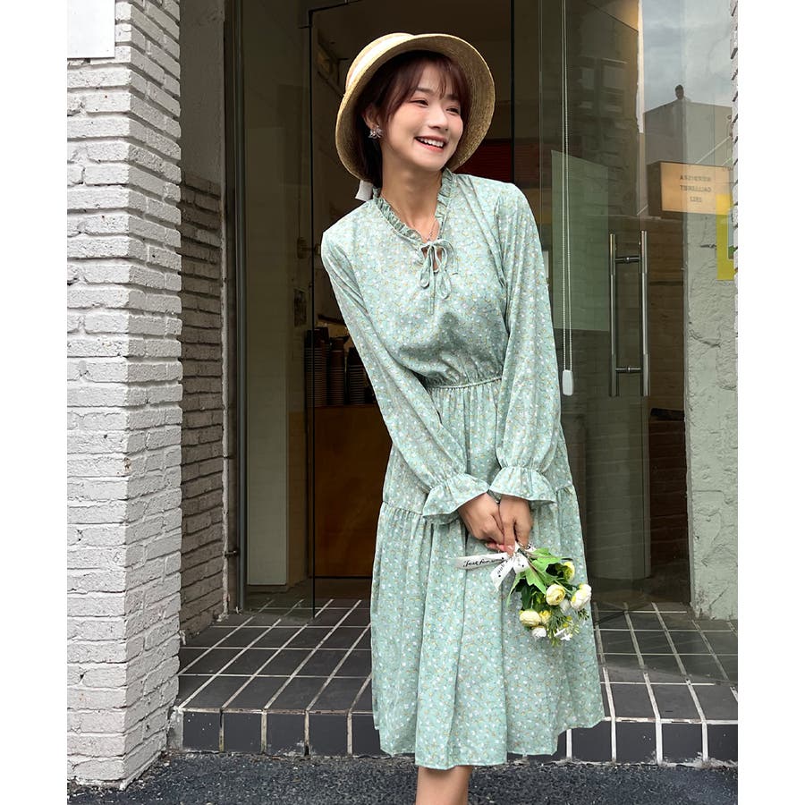 Y2K 春 春服 春コーデ 春ファッション スプリング スプリングコーデ 夏 夏コーデ 夏ファッション 夏服 カジュアル カジュアルコーデ 大人 大人カジュアル オフィスカジュアル オフィス オフィスファッション オフィススタイル 韓国 韓国ファッション 韓国コーデ プチプラ プチプラファッション キャンディースリーブ スリーブ 小花柄 花柄 ワンピース シンプルワンピース 長袖ワンピース ロングワンピース フレアワンピース フェミニン フェミニンコーデ スキッパー スキッパーワンピース 春 ワンピ ウエストゴム 楽ちん楽 りぼん 黒 白 緑 黒ワンピース