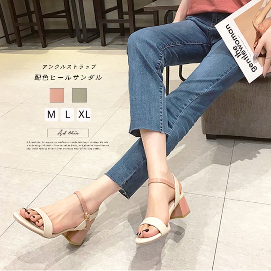 アンクルストラップ 配色ヒールサンダル