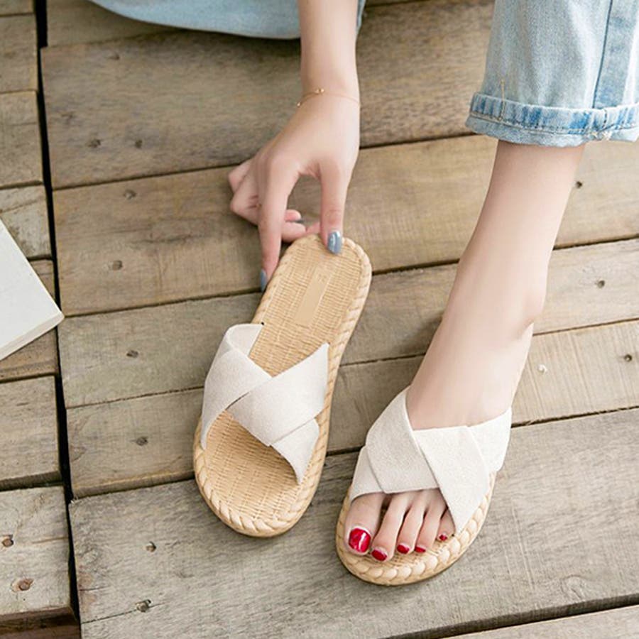 シンプルながらもクロスベルトが一癖ありオシャレなフラットサンダル