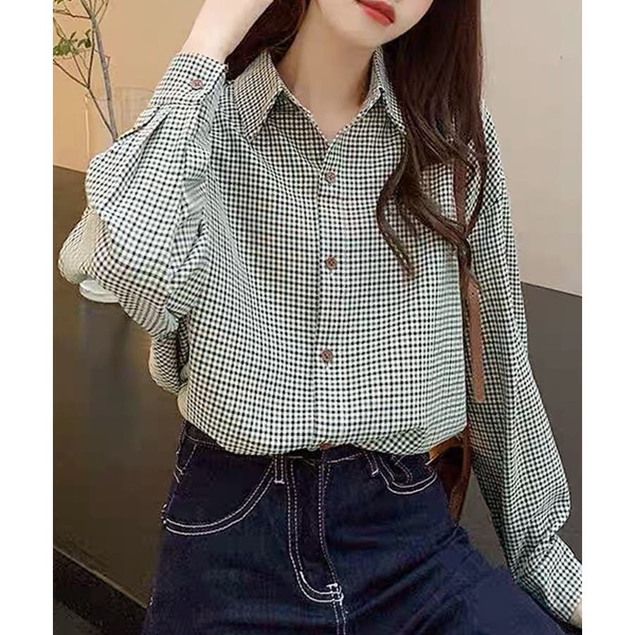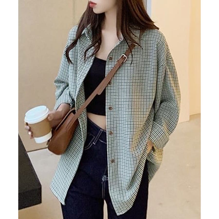 【ブルーグリーン】ベーシックデザインルーズチェックシャツ