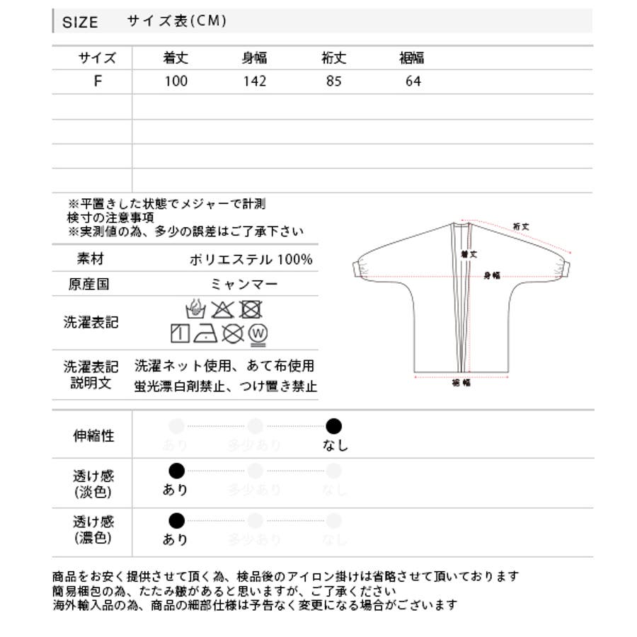 (ブラック、ライトグリーン、パープル、ライトブルー、アイボリー)着丈100 バスト69 裾幅61 裄丈77