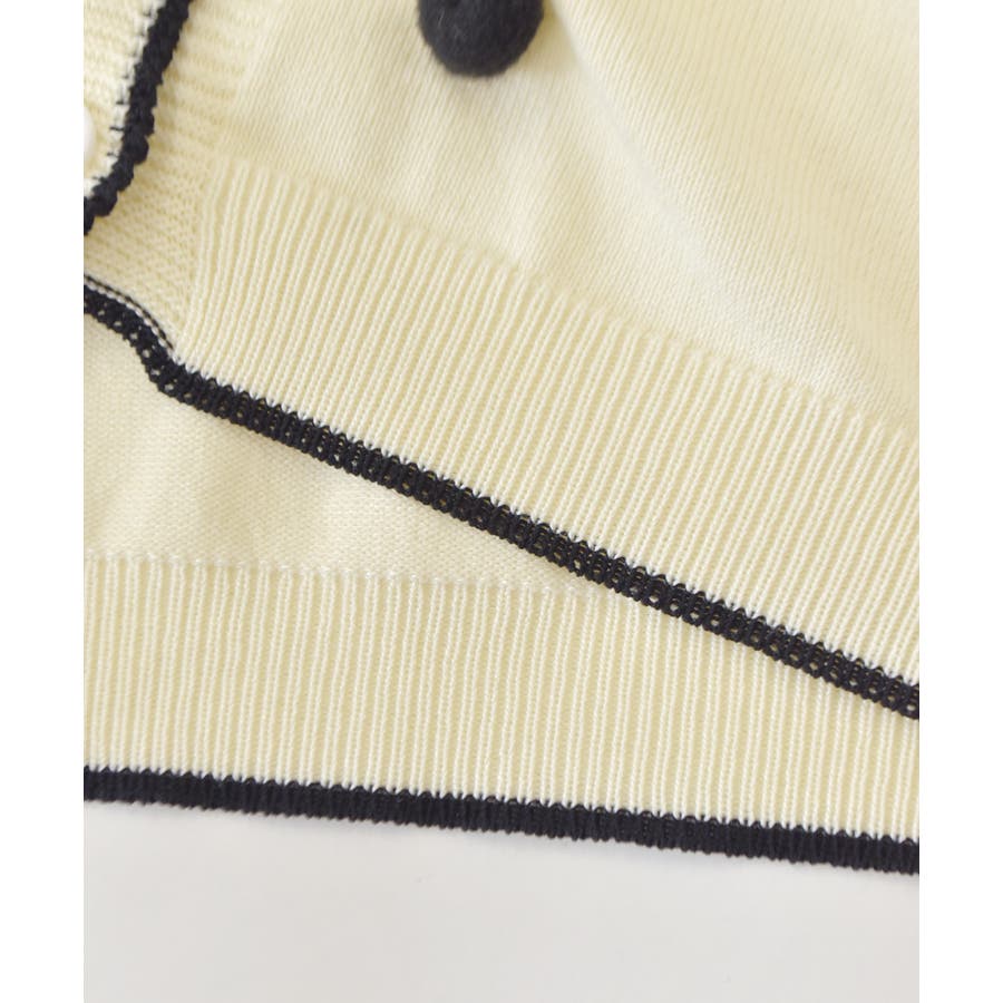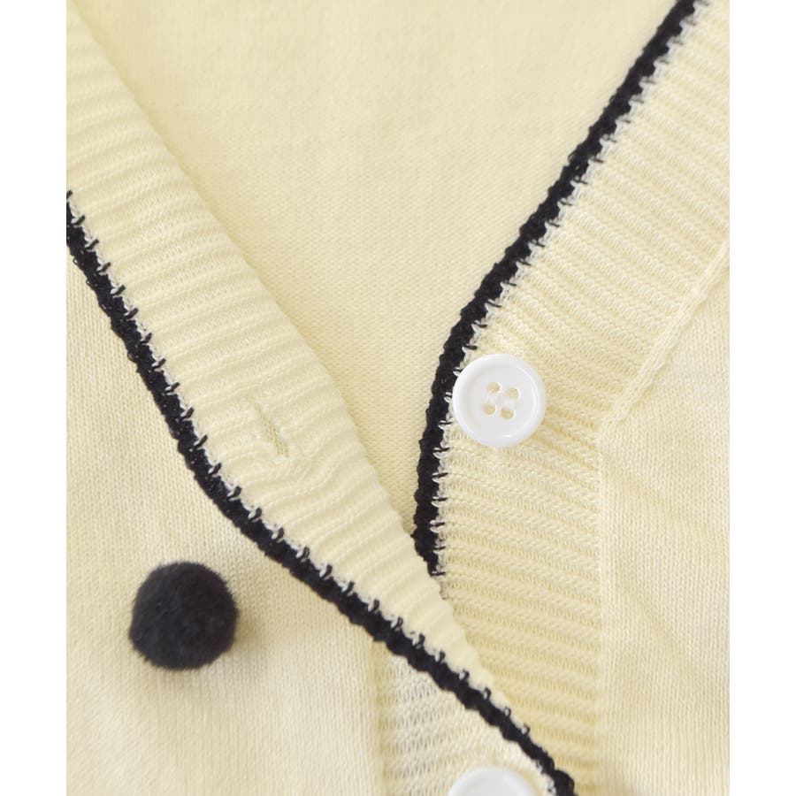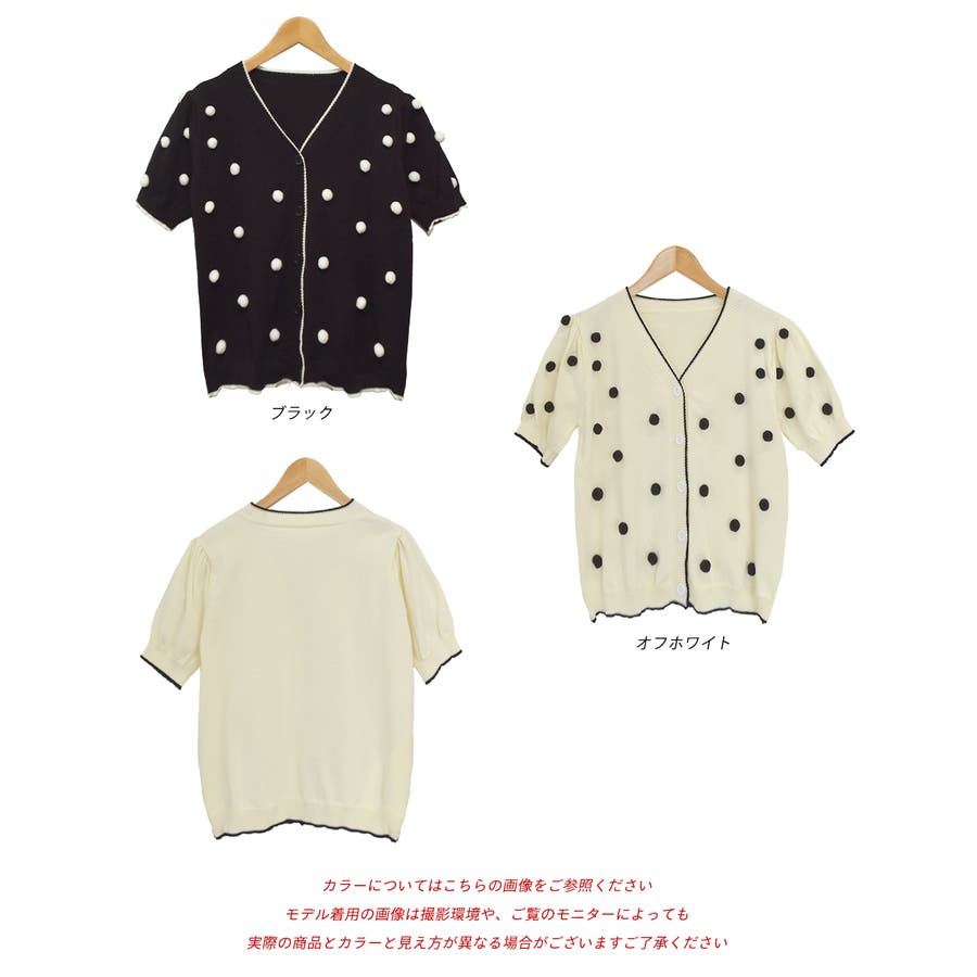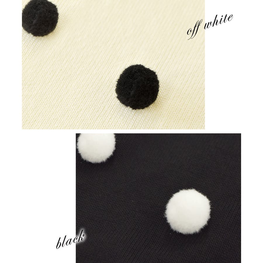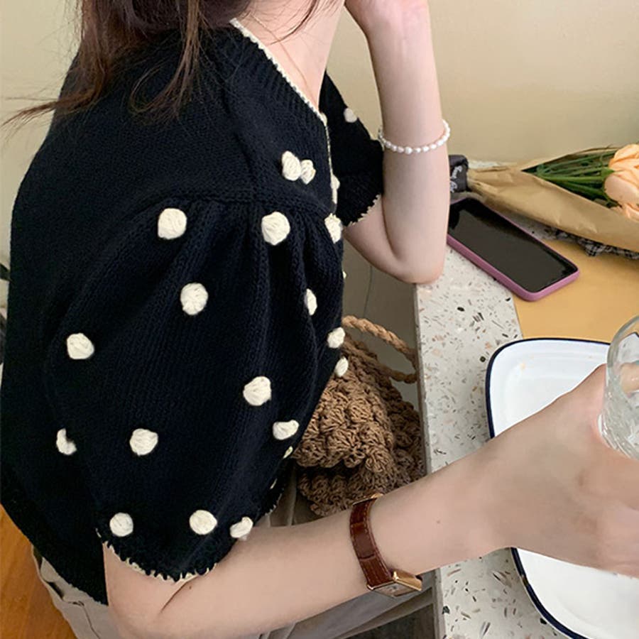 【オフホワイト】バルーンスリーブ ボンボンサマーニット