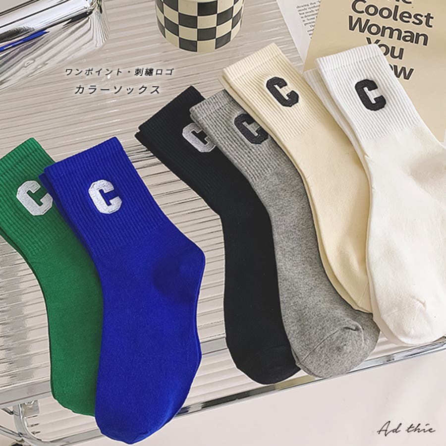 ワンポイント・刺繍ロゴ カラーソックス