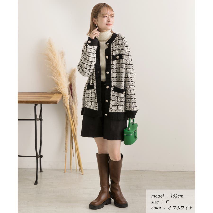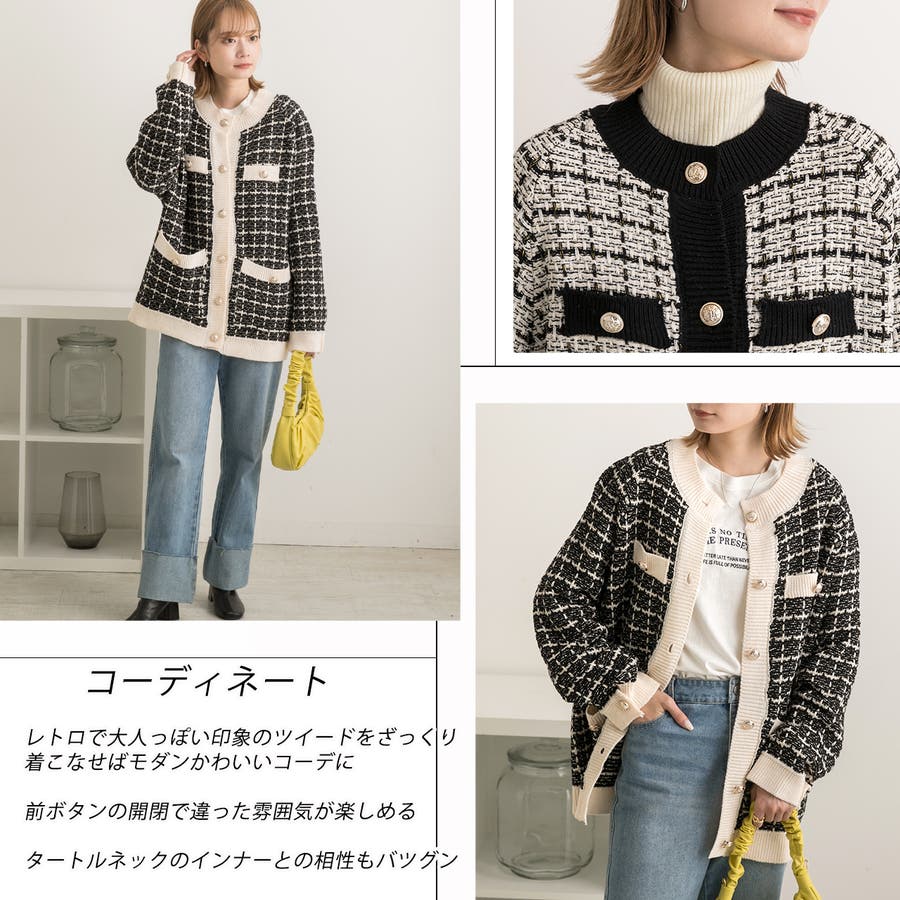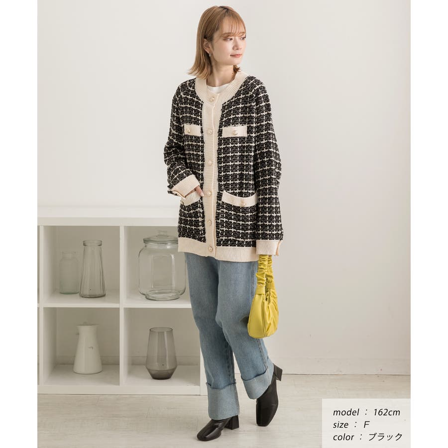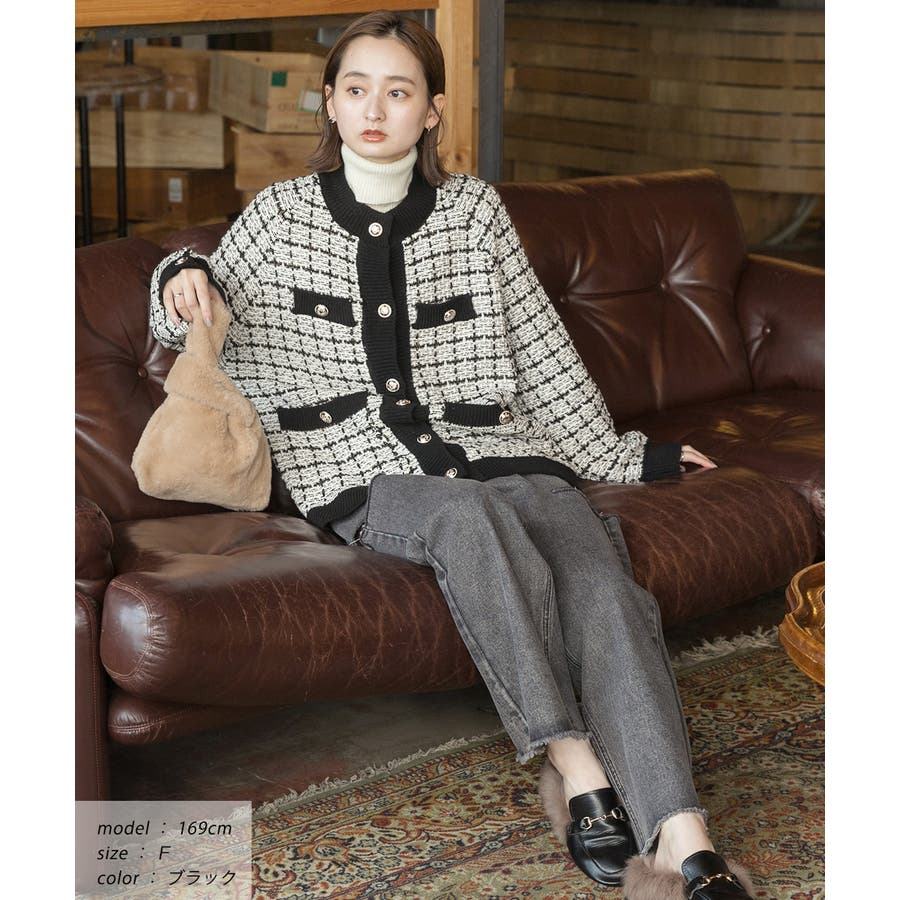 秋 秋コーデ 秋ファッション 秋服 冬 冬コーデ 冬ファッション 冬服 カジュアル カジュアルコーデ 大人 大人カジュアル オフィスカジュアル オフィス オフィスファッション オフィススタイル 韓国 韓国ファッション 韓国コーデ プチプラ プチプラファッション レディース Y2K 量産型 キレイめ 綺麗め きれい きちんと ュニック ニット オーバーサイズ ビック シルエット ゆったり 大きい 柄 ポケット ツイード 総柄 黒 ブラック 白 ホワイト ツイード ツイード柄 ツイードニット ニット