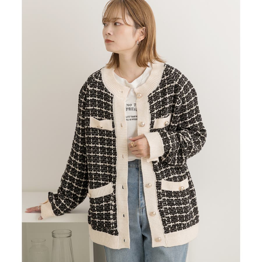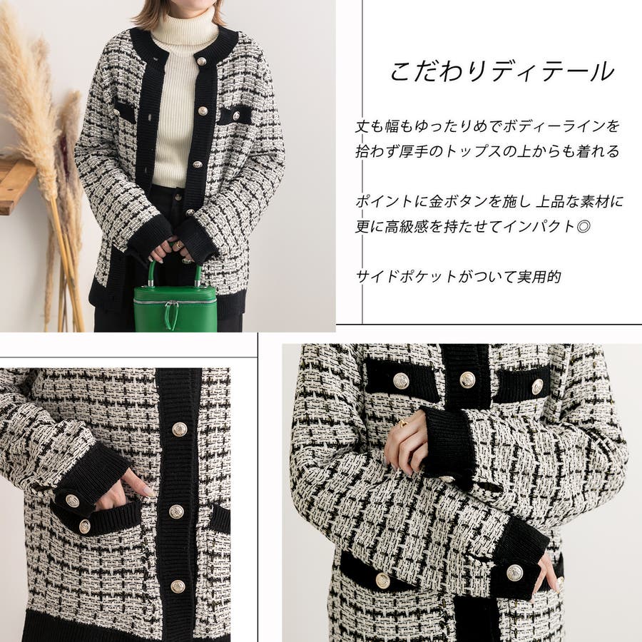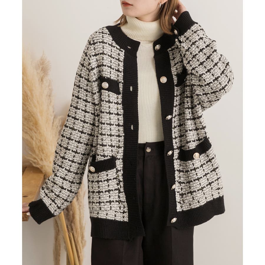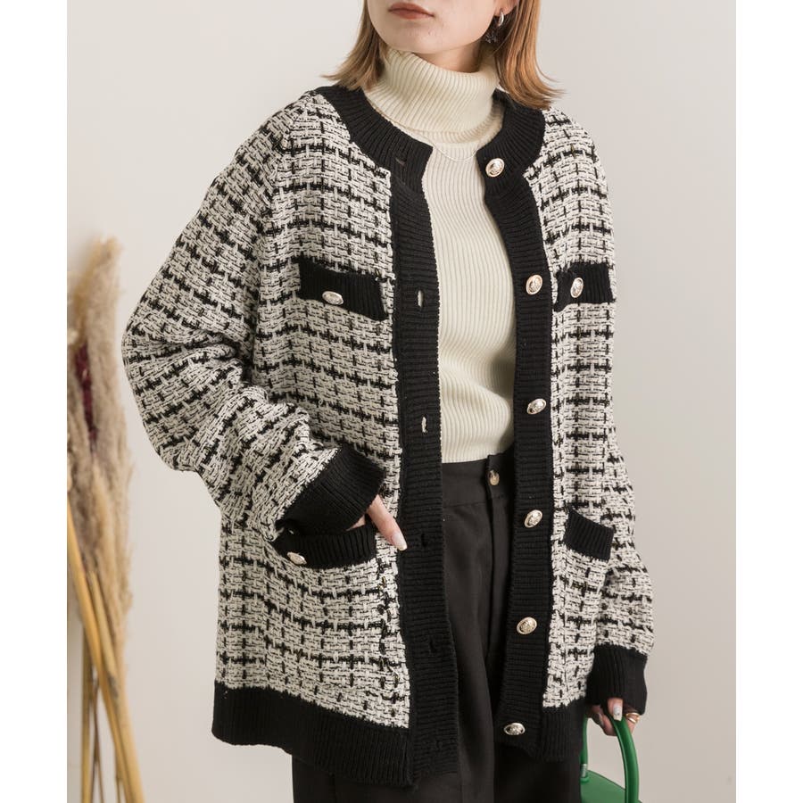 秋 秋コーデ 秋ファッション 秋服 冬 冬コーデ 冬ファッション 冬服 カジュアル カジュアルコーデ 大人 大人カジュアル オフィスカジュアル オフィス オフィスファッション オフィススタイル 韓国 韓国ファッション 韓国コーデ プチプラ プチプラファッション レディース Y2K 量産型 キレイめ 綺麗め きれい きちんと ュニック ニット オーバーサイズ ビック シルエット ゆったり 大きい 柄 ポケット ツイード 総柄 黒 ブラック 白 ホワイト ツイード ツイード柄 ツイードニット ニット