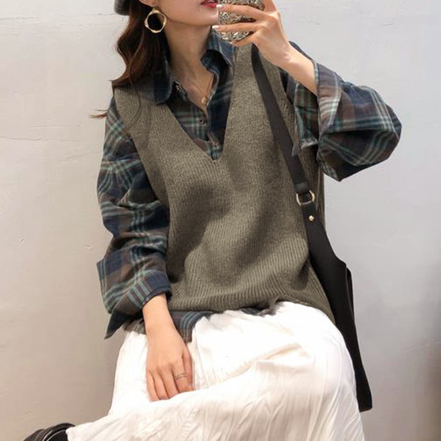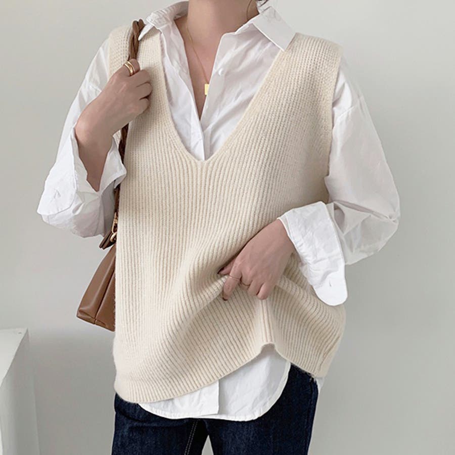 Y2K春 春コーデ 春ファッション 春服冬 冬コーデ 冬ファッション 冬服 カジュアル カジュアルコーデ 大人 大人カジュアル オフィスカジュアル オフィス オフィスファッション オフィススタイル 韓国 韓国ファッション 韓国コーデ プチプラ プチプラファッション ベスト ニットベスト 無地 シンプル レイヤード レイヤードコーデ 重ね着 Vネックニット ベーシックカラー ニュアンスカラー