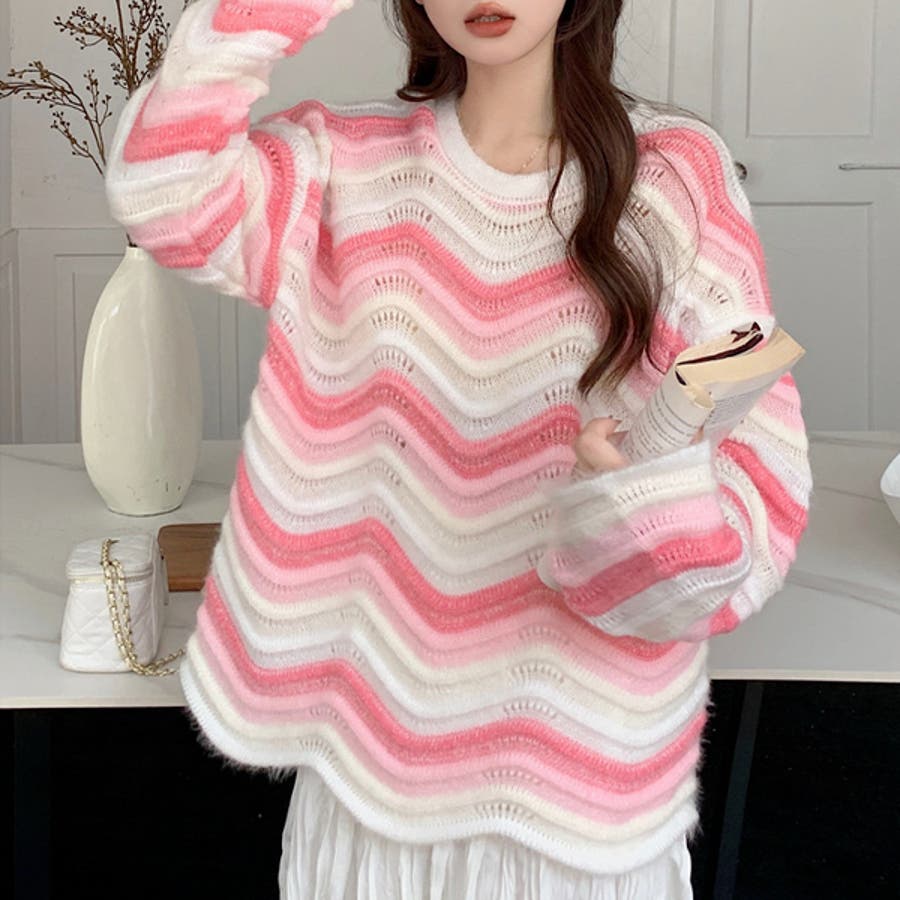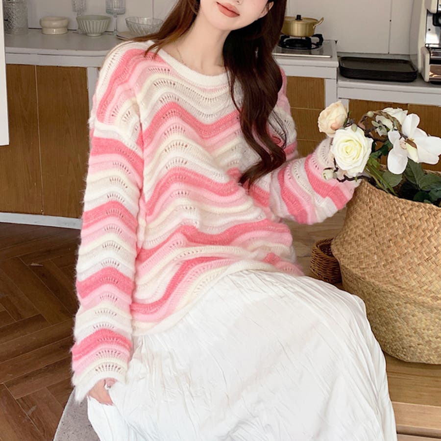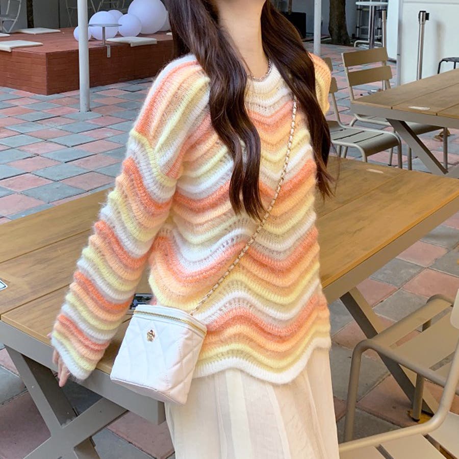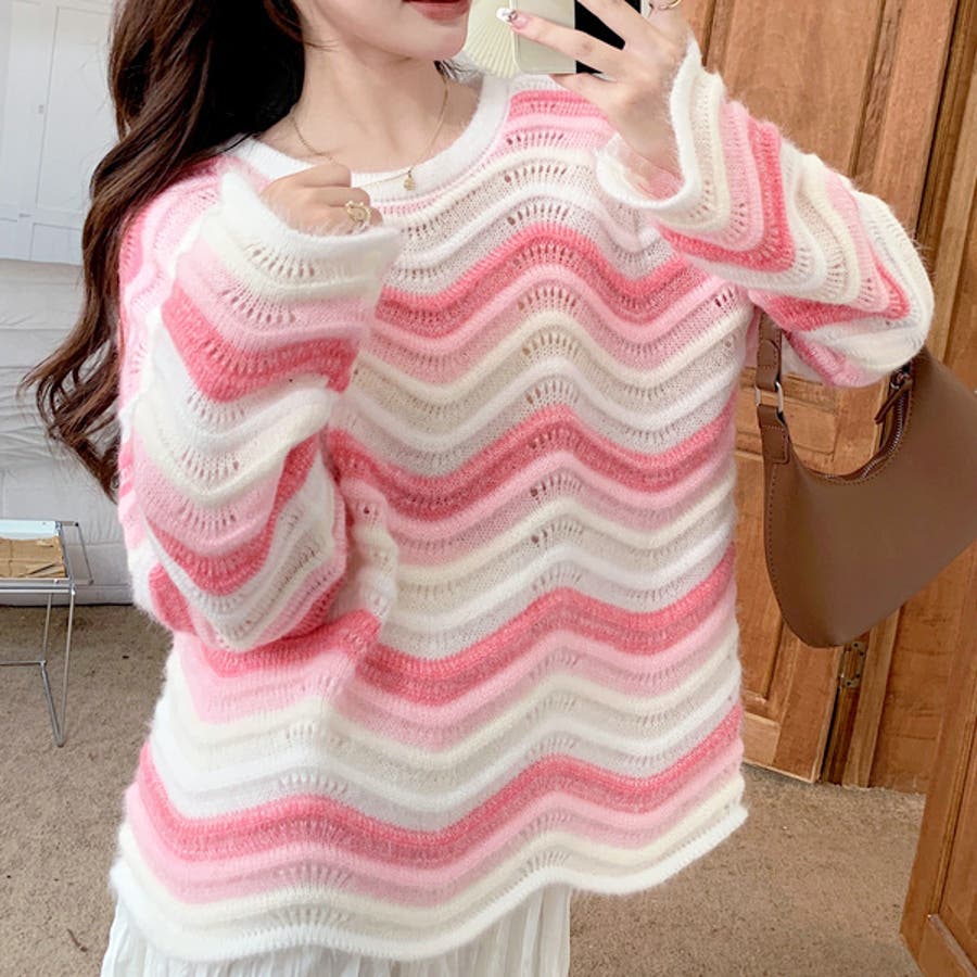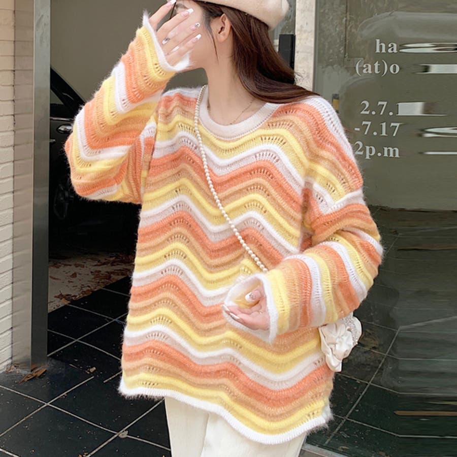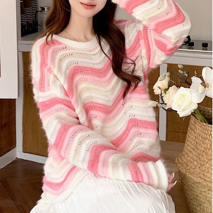 Y2K 秋 秋コーデ 秋ファッション 秋服冬 冬コーデ 冬ファッション 冬服 カジュアル カジュアルコーデ 大人 大人カジュアル 韓国 韓国ファッション 韓国コーデ プチプラ プチプラファッション カラー ボーダー 配色 グラデーション レイヤード ボリューム袖 スリーブ 大きい ビック ゆったり ニット レディース 女性 トップス 長袖 Vネック 無地 シンプル