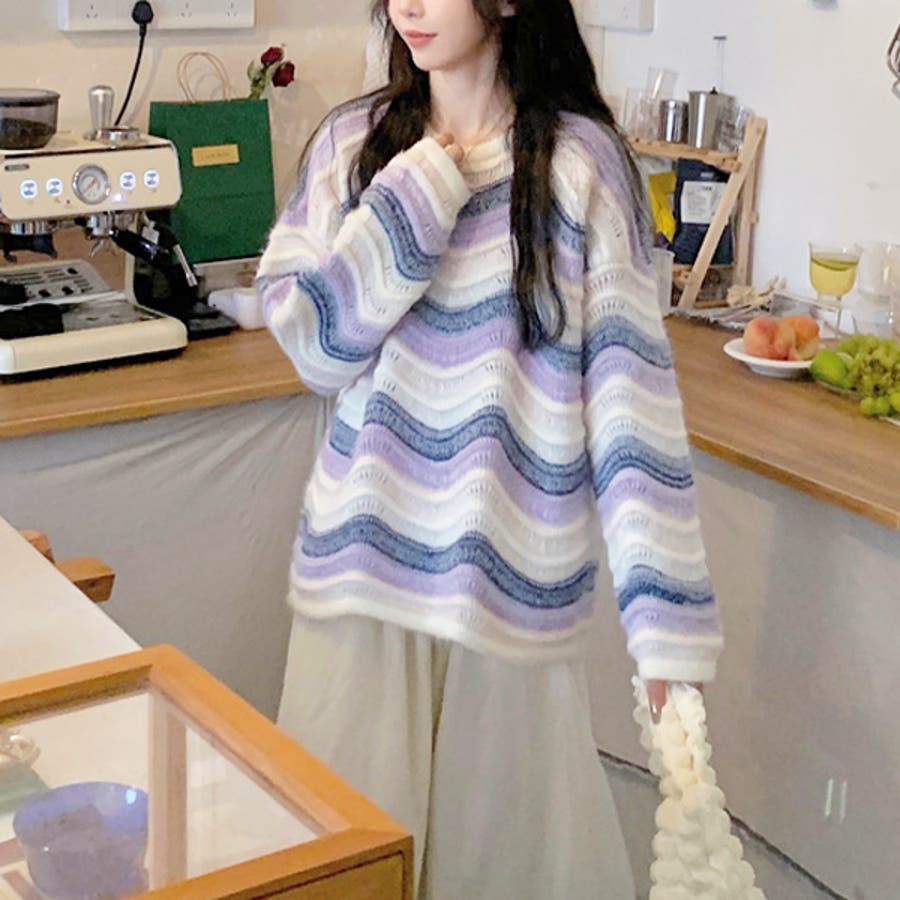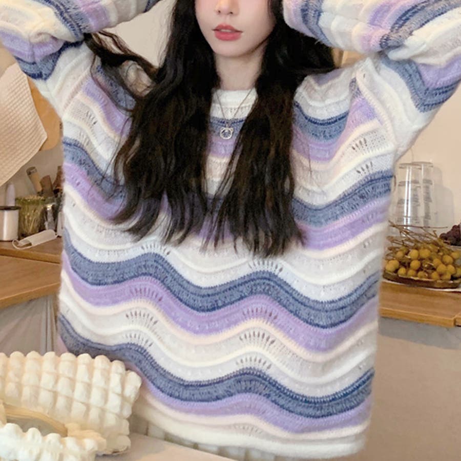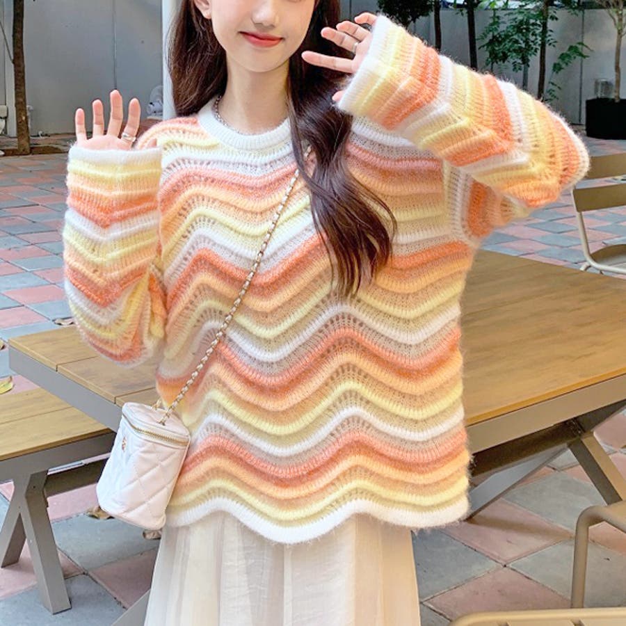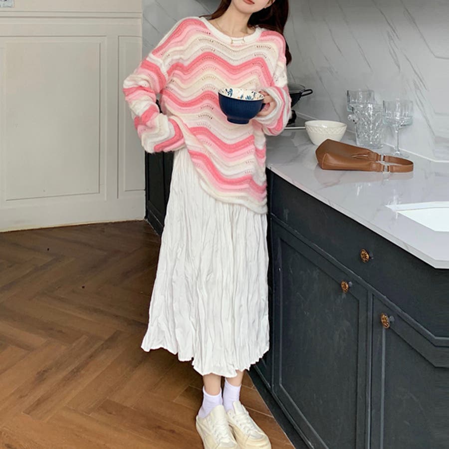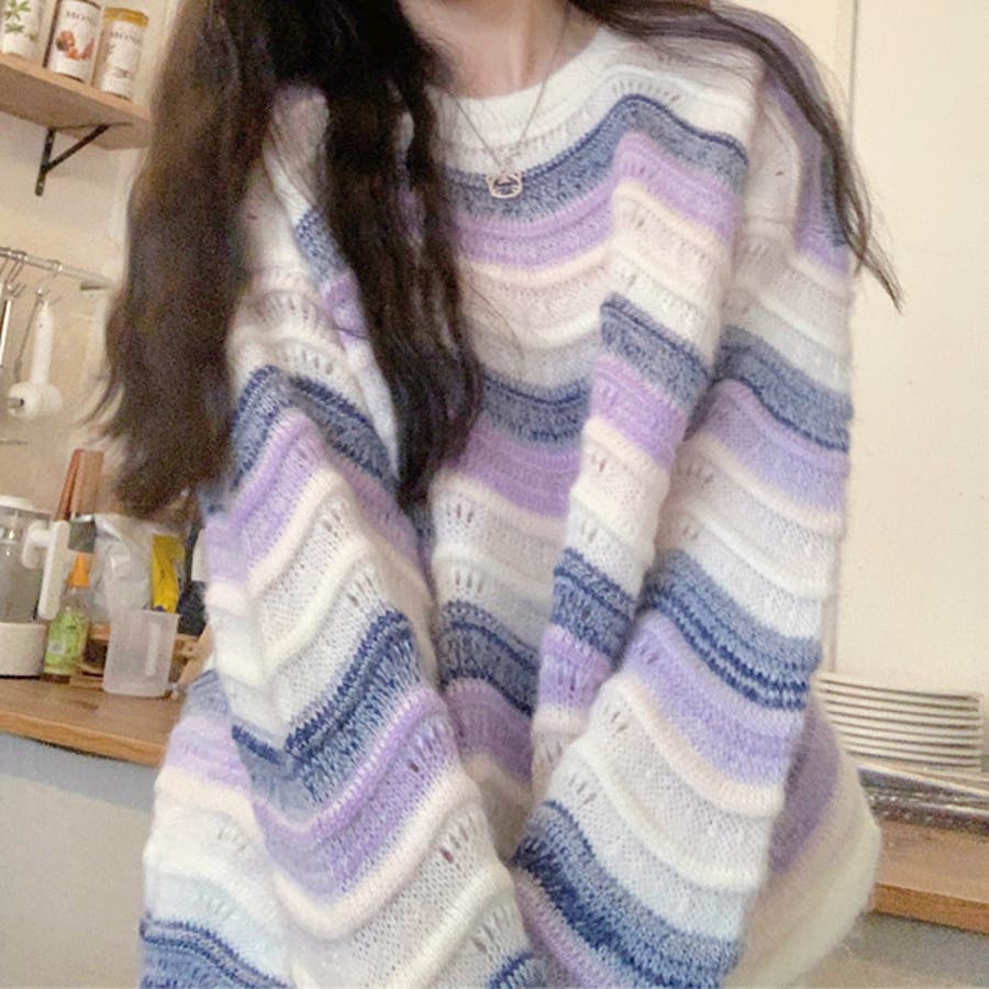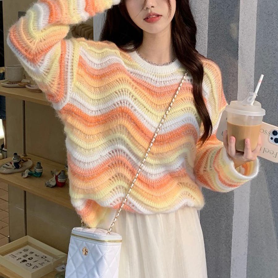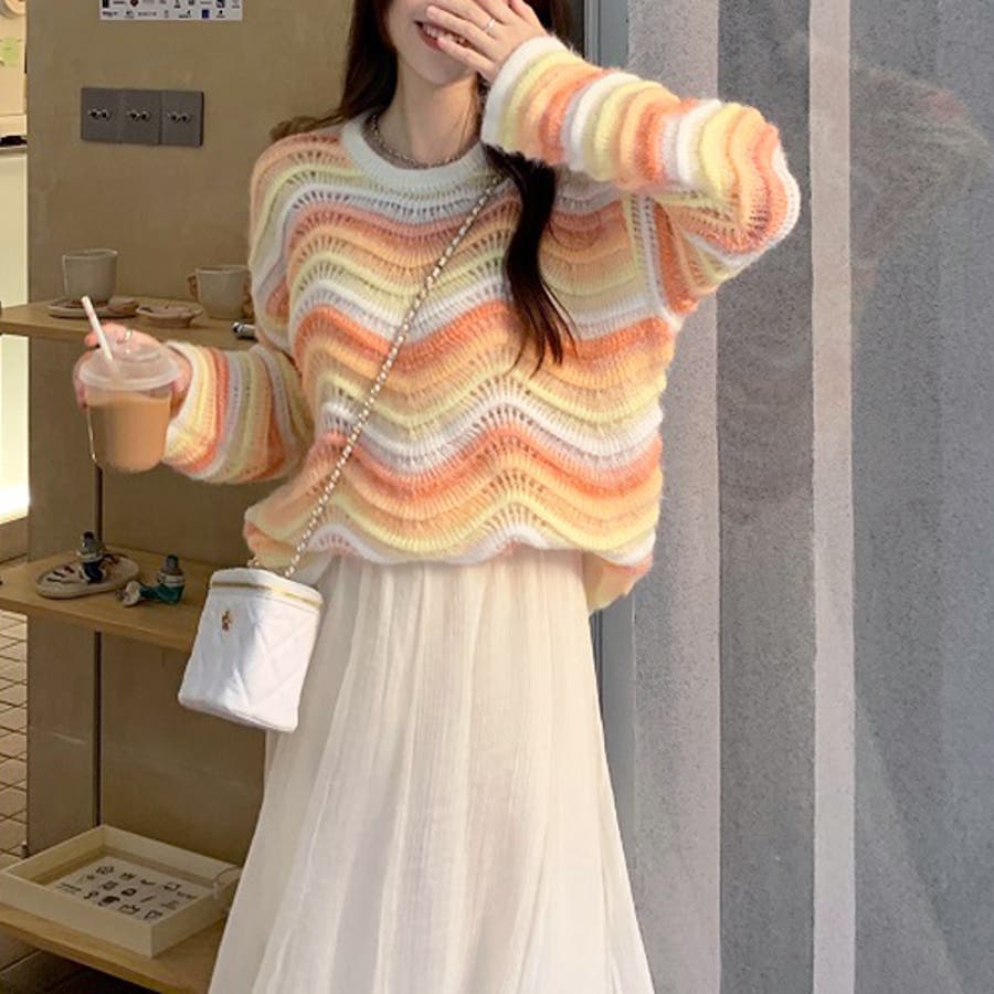 Y2K 秋 秋コーデ 秋ファッション 秋服冬 冬コーデ 冬ファッション 冬服 カジュアル カジュアルコーデ 大人 大人カジュアル 韓国 韓国ファッション 韓国コーデ プチプラ プチプラファッション カラー ボーダー 配色 グラデーション レイヤード ボリューム袖 スリーブ 大きい ビック ゆったり ニット レディース 女性 トップス 長袖 Vネック 無地 シンプル