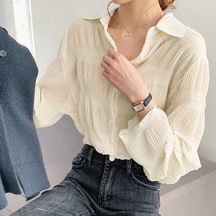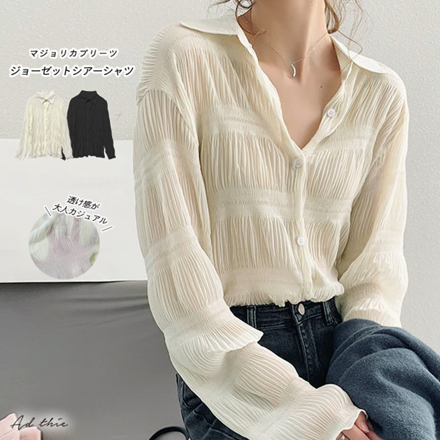 春 春コーデ 春ファッション 春服 冬 冬コーデ 冬ファッション 冬服 カジュアル カジュアルコーデ 大人 大人カジュアル オフィスカジュアル オフィス オフィスファッション オフィススタイル 韓国 韓国ファッション 韓国コーデ プチプラ プチプラファッション Y2K シアー シアーシャツ マジョリカプリーツ プリーツシャツ セレモニー オケージョン 入卒 ジョーゼット ジョーゼットブラウス ジョーゼットシャツ