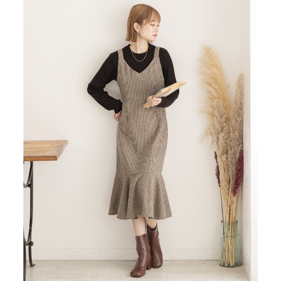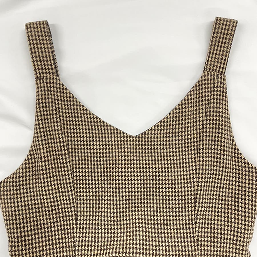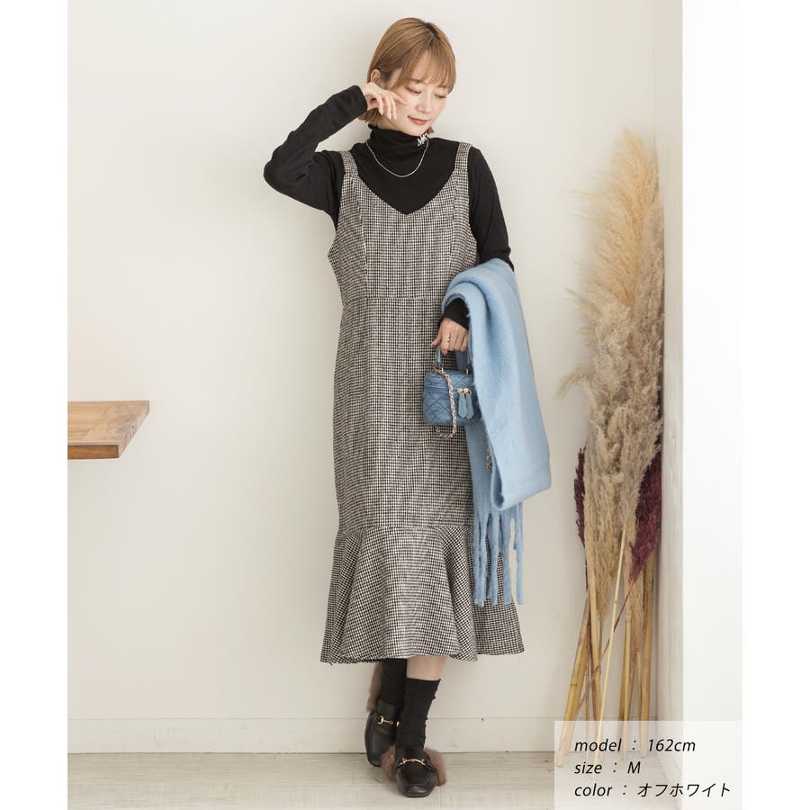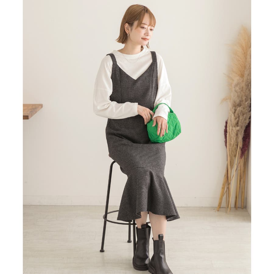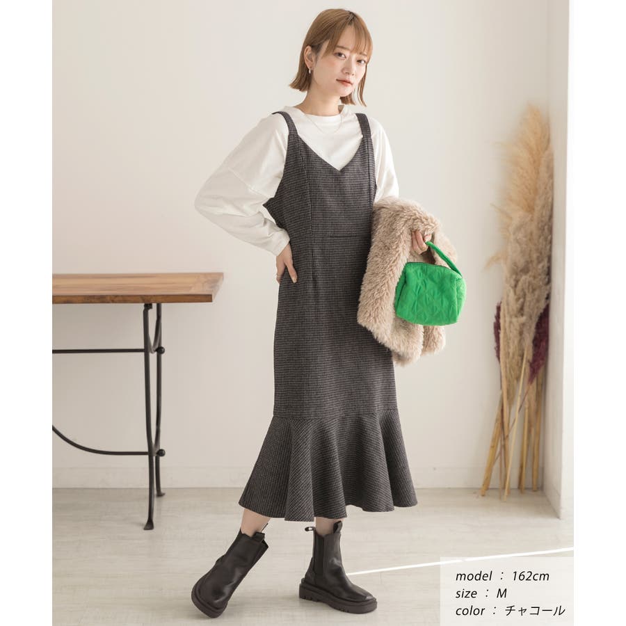 春 春コーデ 春ファッション 春服 冬 冬コーデ 冬ファッション 冬服 カジュアル カジュアルコーデ 大人 大人カジュアル オフィスカジュアル オフィス オフィスファッション オフィススタイル 韓国 韓国ファッション 韓国コーデ プチプラ プチプラファッション レディース Y2K 量産型 キレイめ 綺麗め きれい きちんと ロング マーメイド マーメイドスカート スカート トレンド チェック グレンチェック キャミ キャミワンピース ジャンパースカート シンプル ベーシック 裏地 袖なし Vカット 楽ちん お出かけ 布帛 柄 柄ワンピース 白 黒 オフホワイト ブラック ブラウン グレー チャコール マーメイド マーメイドワンピース ワンピ