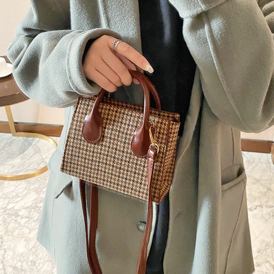 千鳥柄 スクエア ショルダーバッグ 春 冬