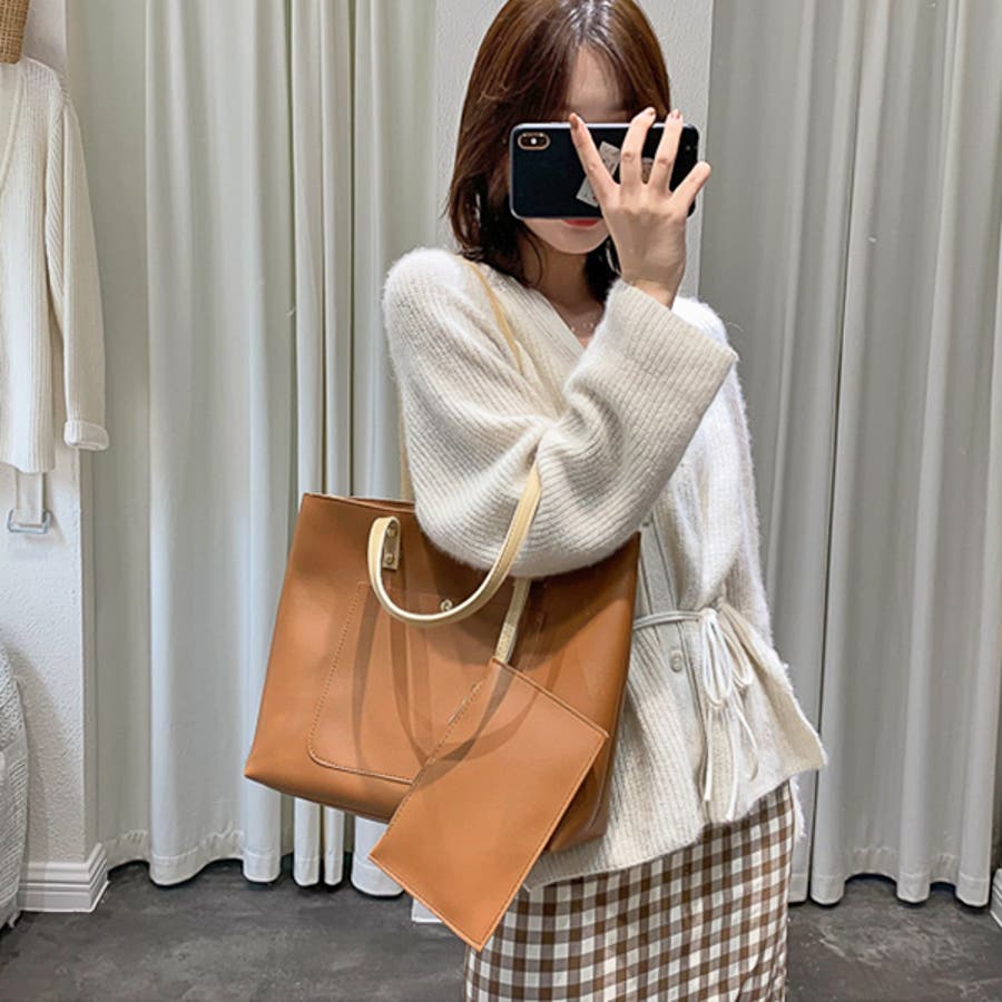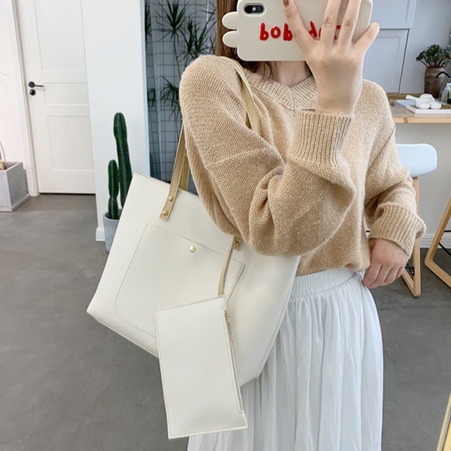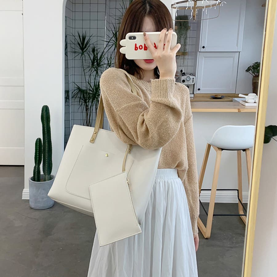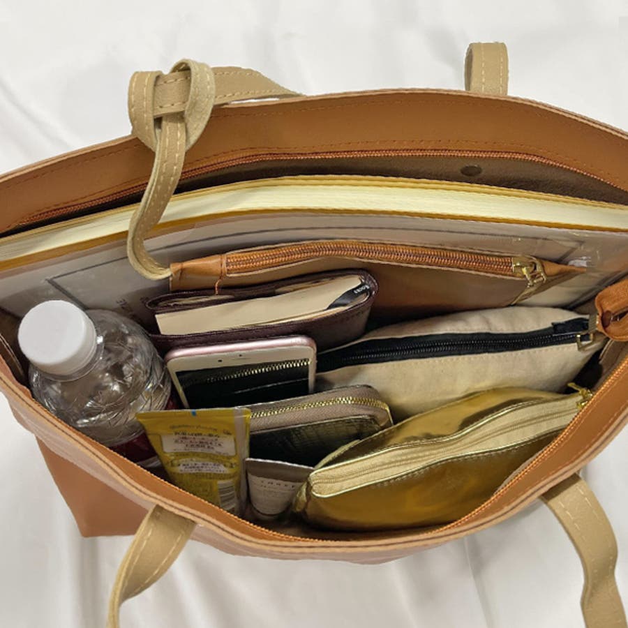 秋 秋コーデ 秋ファッション 秋服 冬 冬コーデ 冬ファッション 冬服 カジュアル カジュアルコーデ 大人 大人カジュアル オフィスカジュアル オフィス オフィスファッション オフィススタイル 韓国 韓国ファッション 韓国コーデ プチプラ プチプラファッション Y2K バッグ トートバッグ マチ広い マチあり マグネット 軽い ポケット付き ミニポーチ付き エコレザー エコレザートート トートバッグ