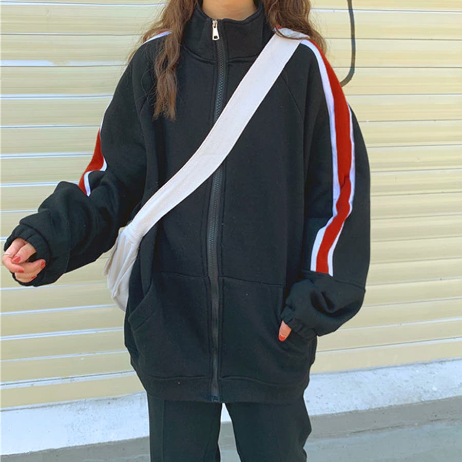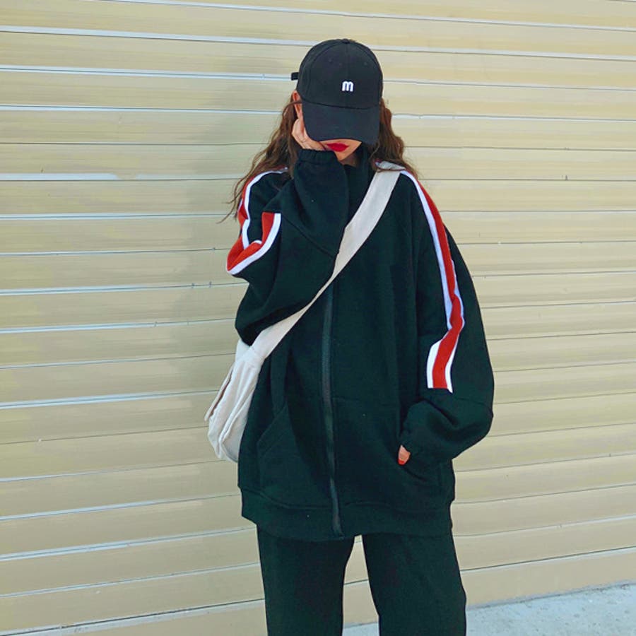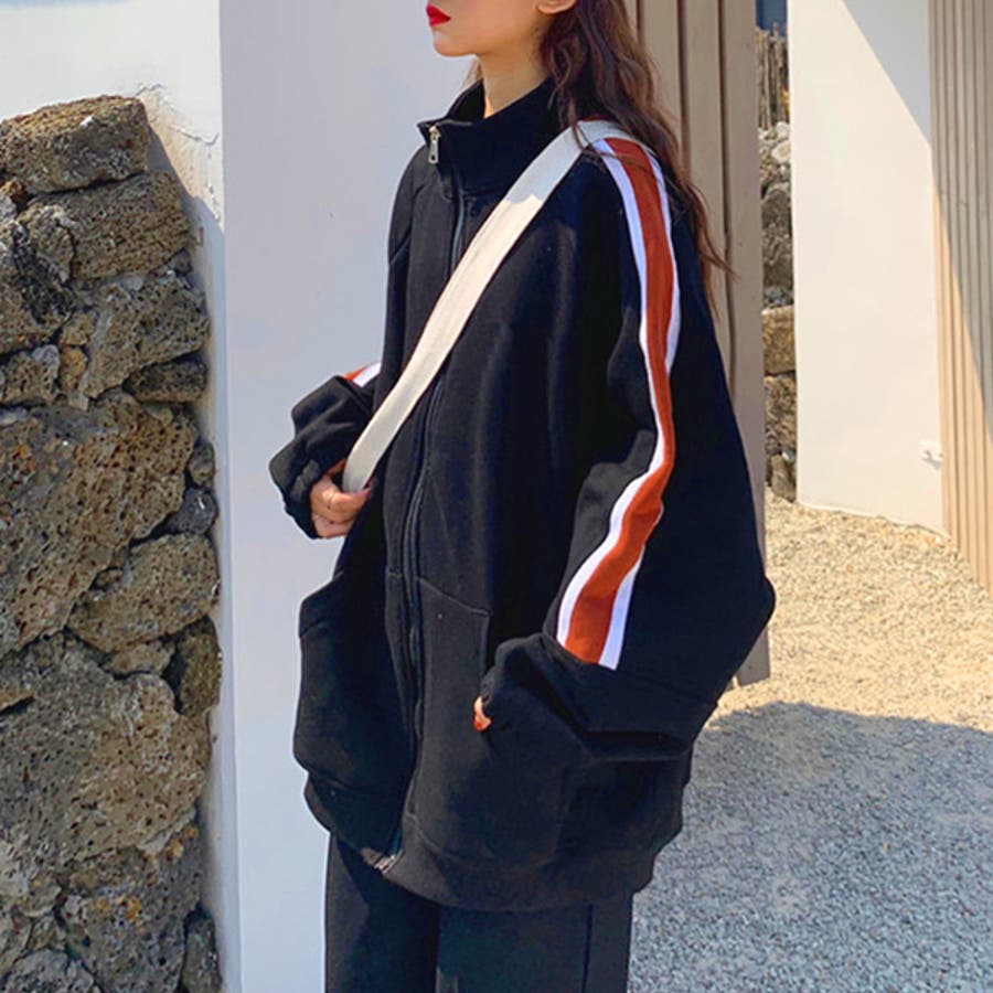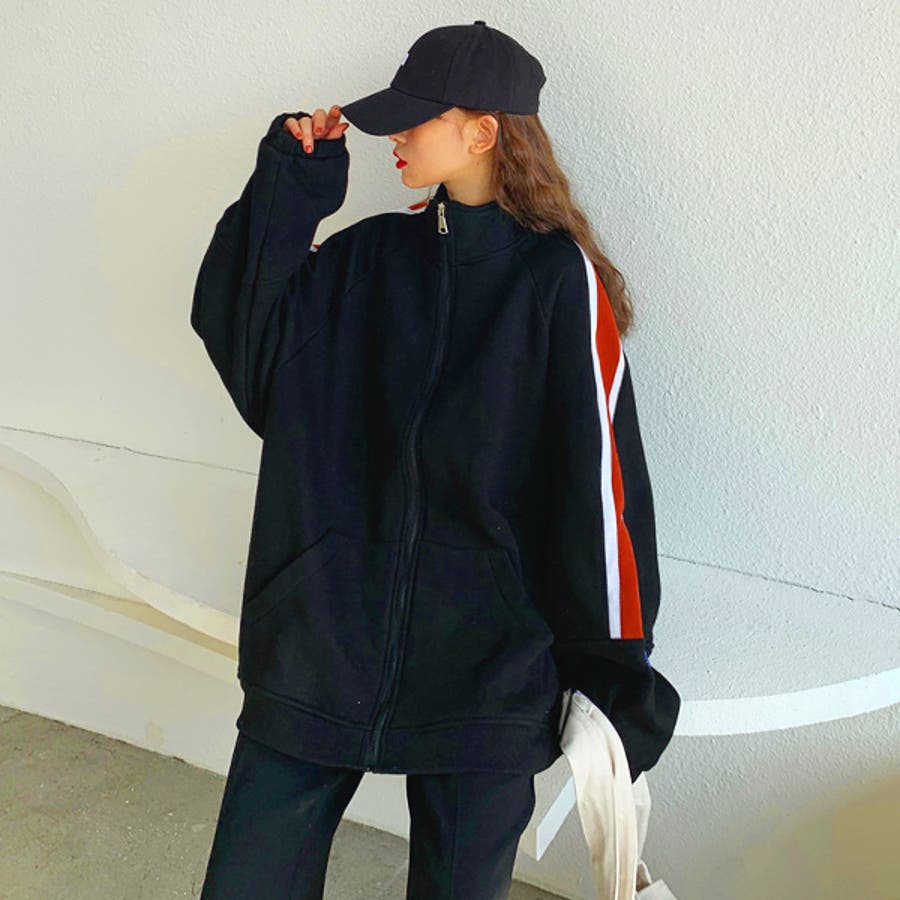 秋 秋コーデ 秋ファッション 秋服 冬 冬コーデ 冬ファッション 冬服 カジュアル カジュアルコーデ 大人 大人カジュアル オフィスカジュアル オフィス オフィスファッション オフィススタイル 韓国 韓国ファッション 韓国コーデ プチプラ プチプラファッション Y2K 配色ライン トラックジャケット ジャージー スタンドネック ブルゾン 袖ライン 配色ライン 裏起毛 裏起毛ジャージー 暖かい