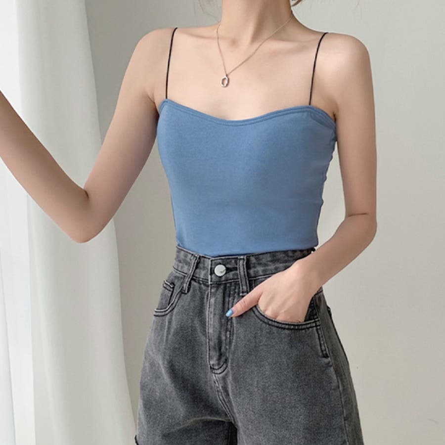秋 秋コーデ 秋ファッション 秋服 夏 夏コーデ 夏ファッション 夏服 カジュアル カジュアルコーデ 大人 大人カジュアル オフィスカジュアル オフィス オフィスファッション オフィススタイル 韓国 韓国ファッション 韓国コーデ プチプラ プチプラファッション Y2K ホワイト ブラック ブルー ピンク 白 黒 青 短め 華奢 細 紐 ブラ一体型キャミソール ブラ付きキャミ 部屋着 ワークアウト ジム ヨガ フィットネス ウェア 無地 シンプル スポーツブラ