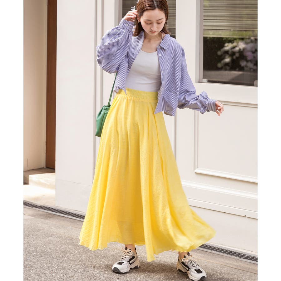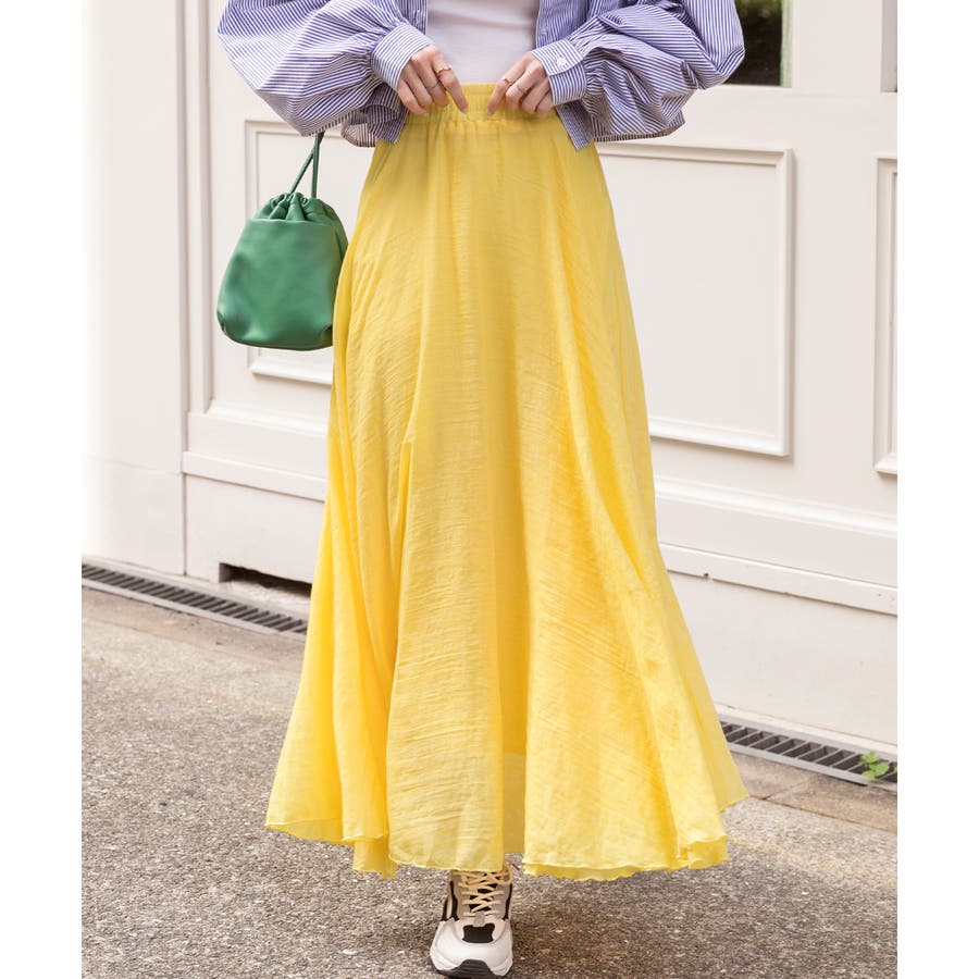 春 春コーデ 春ファッション 春服 夏 夏コーデ 夏ファッション 夏服 カジュアル カジュアルコーデ 大人 大人カジュアル オフィスカジュアル オフィス オフィスファッション オフィススタイル 韓国 韓国ファッション 韓国コーデ プチプラ プチプラファッション レディース Y2K 量産型 キレイめ 綺麗め きれい きちんと スカート ボリュームスカート コットン 綿 フレア フレアスカート カラースカート コットンスカート ボリューム ドレープ お出かけ デイリー 着丈長め ロング ロングスカート ロング丈 イエロー ピンク ブルー グリーン ブラック 黒 推しかつ 推しカラー