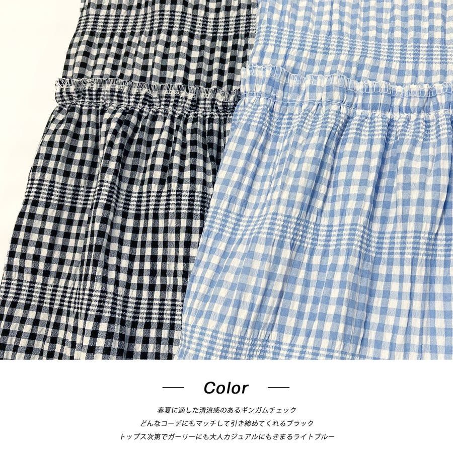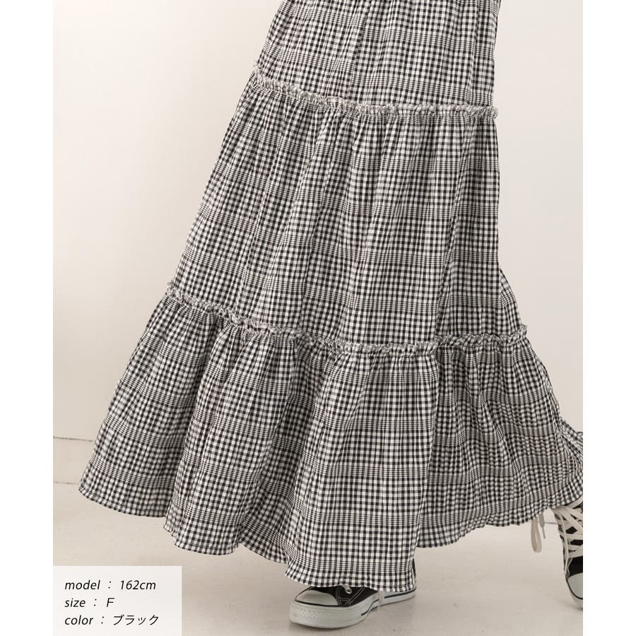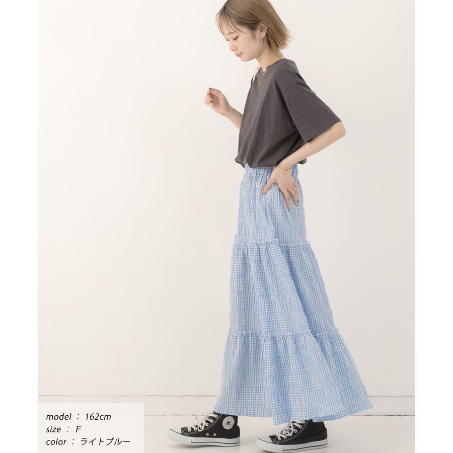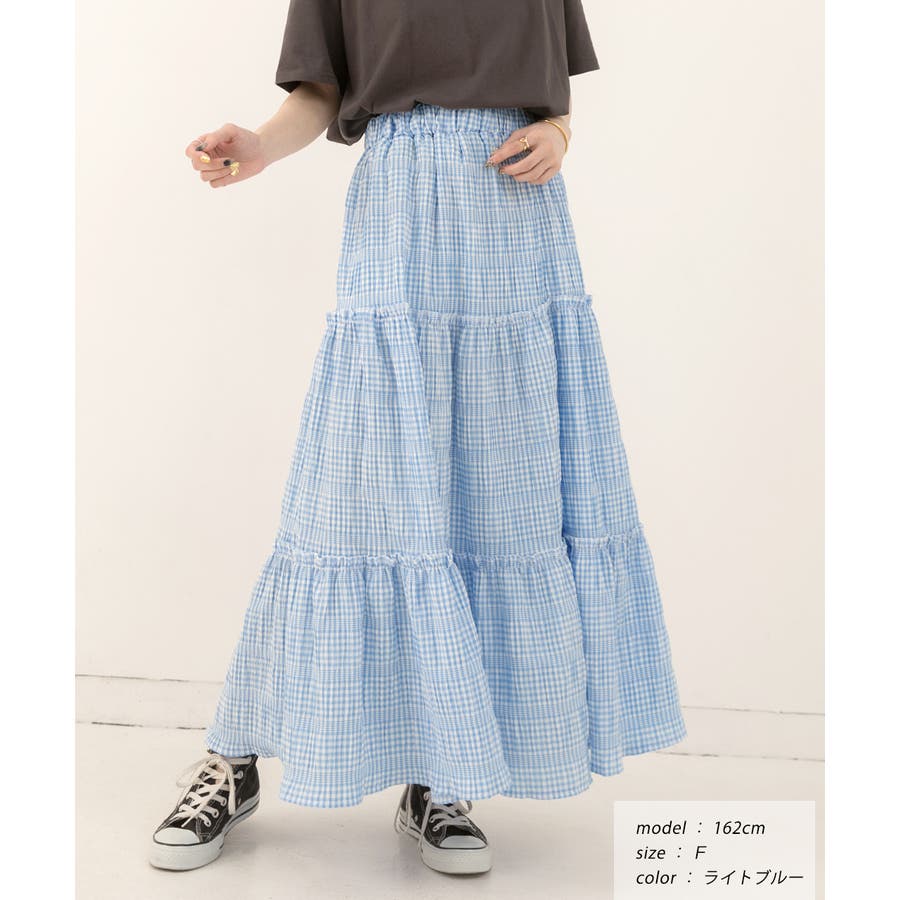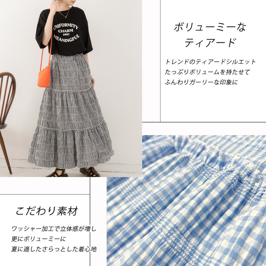 ギンガムチェック・ワッシャー加工 ロングティアードスカート