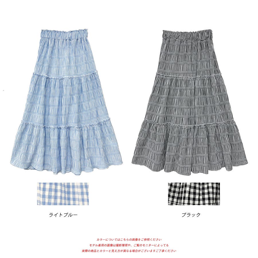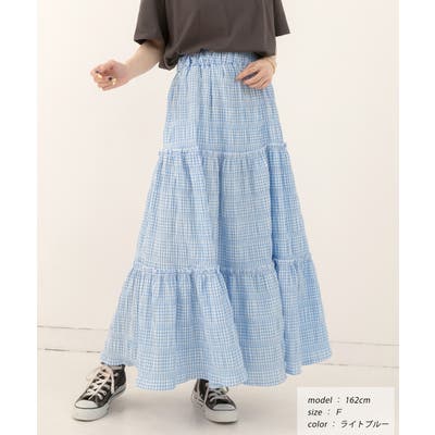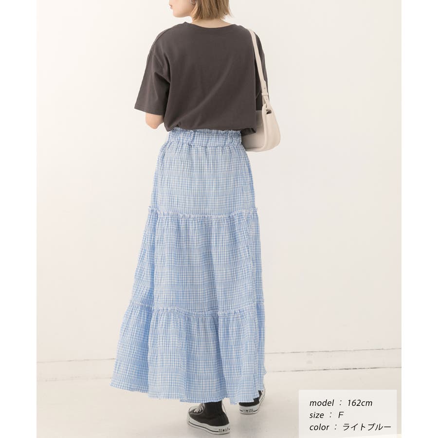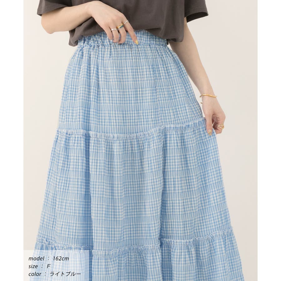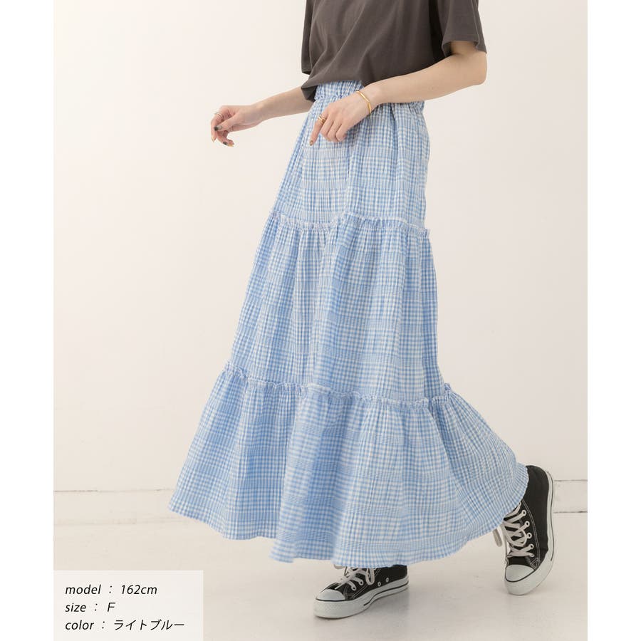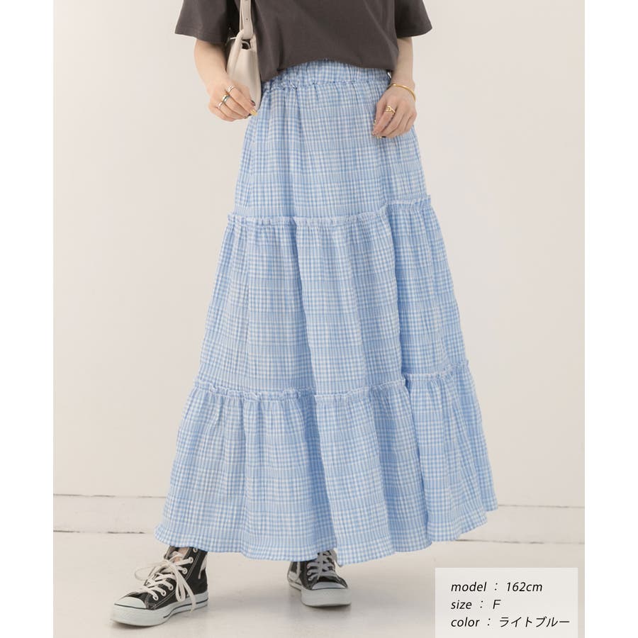 ギンガムチェック・ワッシャー加工 ロングティアードスカート