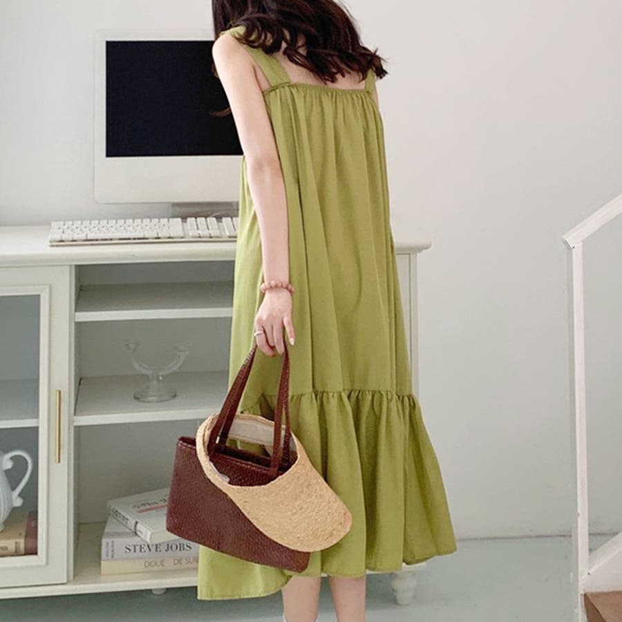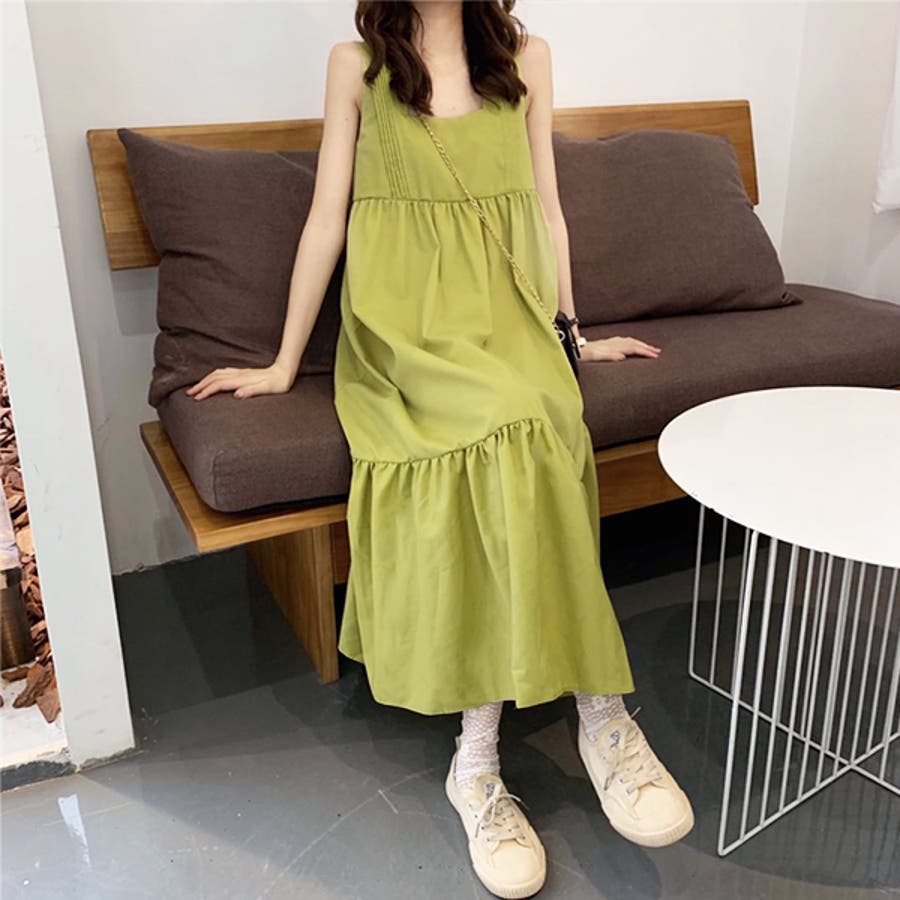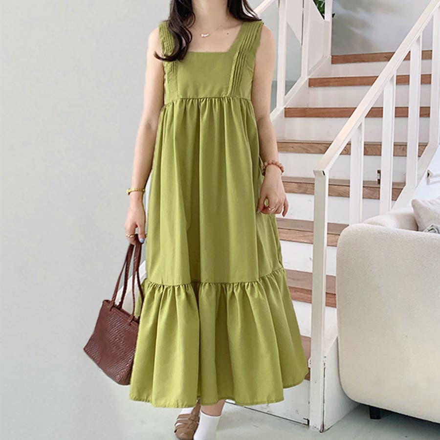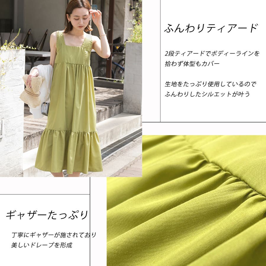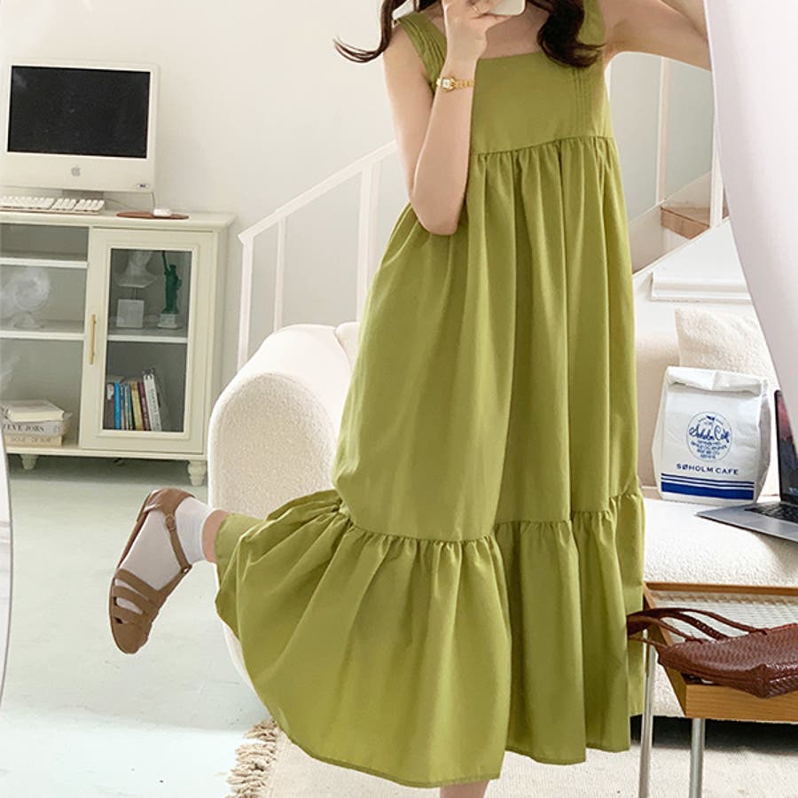 秋 秋コーデ 秋ファッション 秋服 夏 夏コーデ 夏ファッション 夏服 カジュアル カジュアルコーデ 大人 大人カジュアル オフィスカジュアル オフィス オフィスファッション オフィススタイル 韓国 韓国ファッション 韓国コーデ プチプラ プチプラファッション レディース Y2K 量産型 キレイめ 綺麗め きれい きちんと ワンピース 夏ワンピース スクエア スクエアネック ティアード ティアードワンピース ピンタック 楽ちん 楽 レイヤード 重ね着 ギャザー ギャザーワンピース ミモレ グリーン ブラック 黒