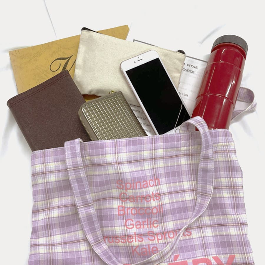 秋 秋コーデ 秋ファッション 秋服 夏 夏コーデ 夏ファッション 夏服 カジュアル カジュアルコーデ 大人 大人カジュアル オフィスカジュアル オフィス オフィスファッション オフィススタイル 韓国 韓国ファッション 韓国コーデ プチプラ プチプラファッション レディース Y2K 量産型 キレイめ 綺麗め きれい きちんと 推しカラー 推しかつ チェック柄 チェックトートバッグ トートバッグ ロゴ トートバッグ トートバッグ大容量 大容量バッグ 夏バッグ 内ポケット付き ポケット付き ピンク ブラウン パープル