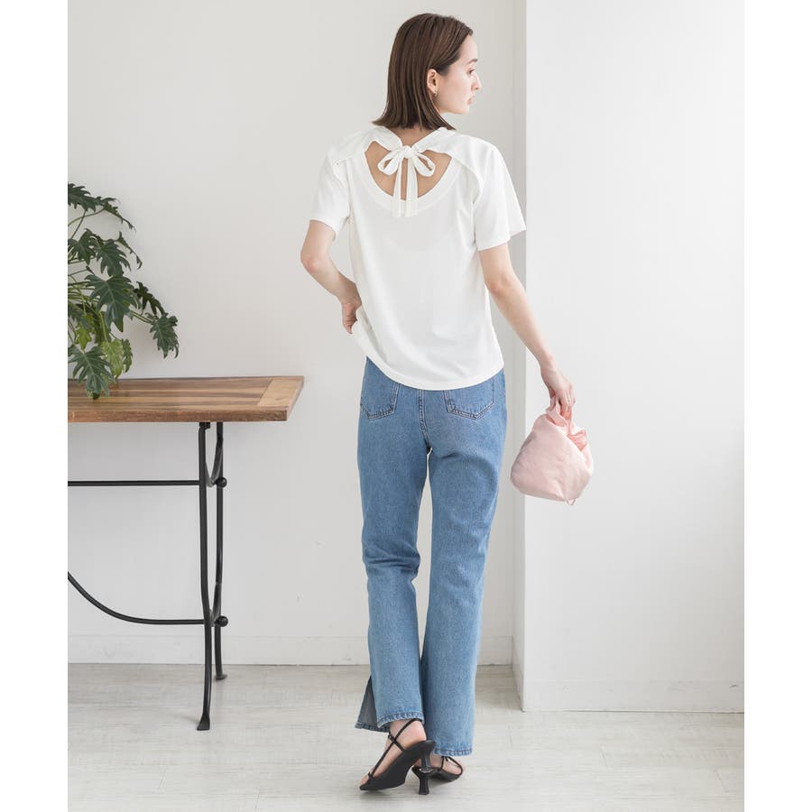 春 春コーデ 春ファッション 春服 夏 夏コーデ 夏ファッション 夏服 カジュアル カジュアルコーデ 大人 大人カジュアル オフィスカジュアル オフィス オフィスファッション オフィススタイル 韓国 韓国ファッション 韓国コーデ プチプラ プチプラファッション レディース Y2K 量産型 キレイめ 綺麗め きれい きちんと バックリボン リボン リボンTシャツ バックデザイン バックデザインTシャツ 無地 無地Tシャツ さらっと 柔らか 着心地抜群 カットアウト カット シンプル シンプルTシャツ 楽ちん 楽々 ベーシック ベーシックTシャツ オフホワイト ホワイト 白 黒 ブラック