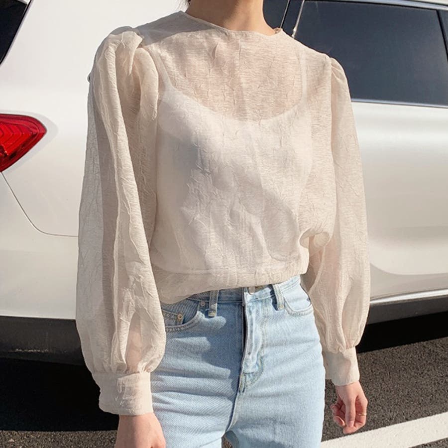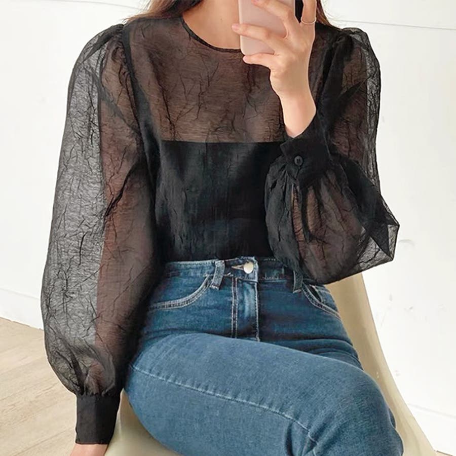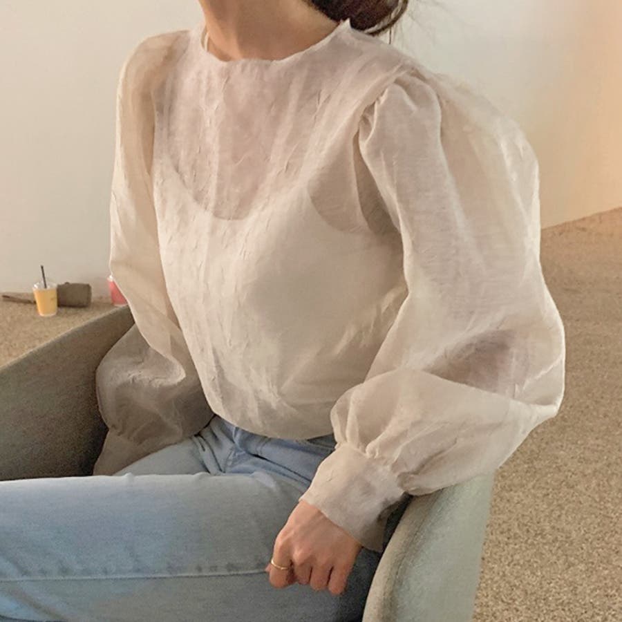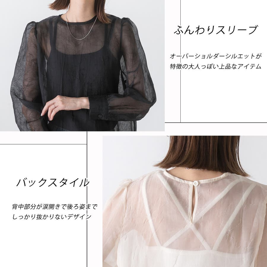 春 春コーデ 春ファッション 春服 冬 冬コーデ 冬ファッション 冬服 カジュアル カジュアルコーデ 大人 大人カジュアル オフィスカジュアル オフィス オフィスファッション オフィススタイル 韓国 韓国ファッション 韓国コーデ プチプラ プチプラファッション レディース Y2K 量産型 キレイめ 綺麗め きれい きちんと シアー シアーブラウス ボリューム袖 ボリュームスリーブ ふんわり トップス ブラウス オフィスブラウス プルオーバー 長袖 無地 ゆったり 楽ちん 楽 しぼ シボ感 ブラック 黒 オフホワイト ホワイト アイボリー 白