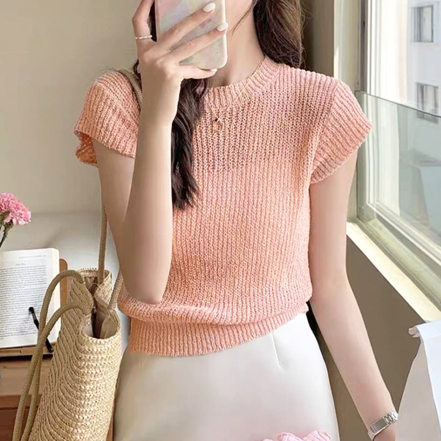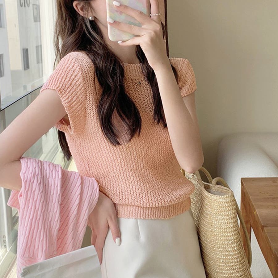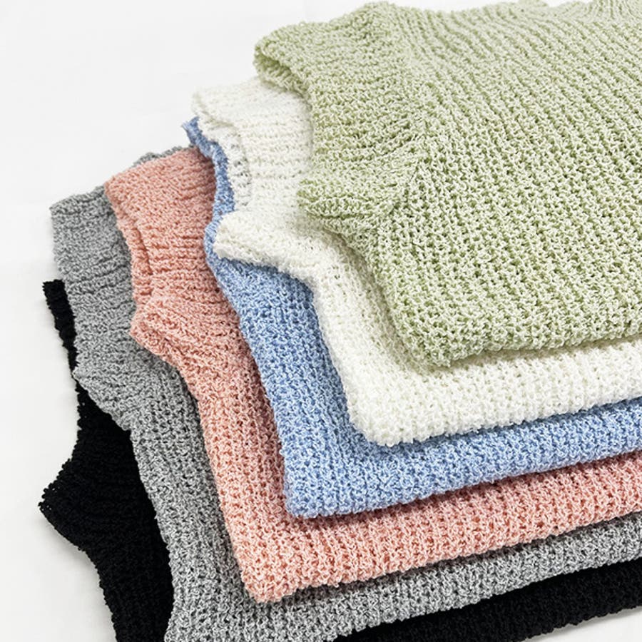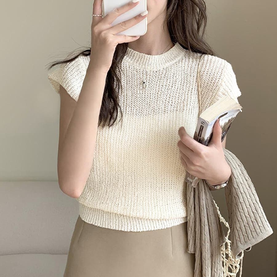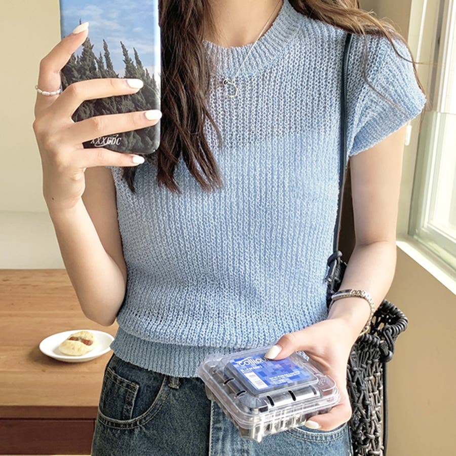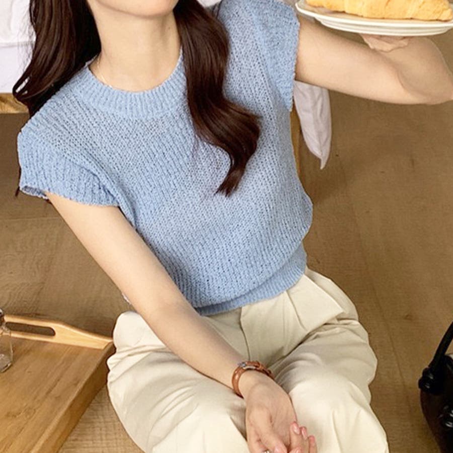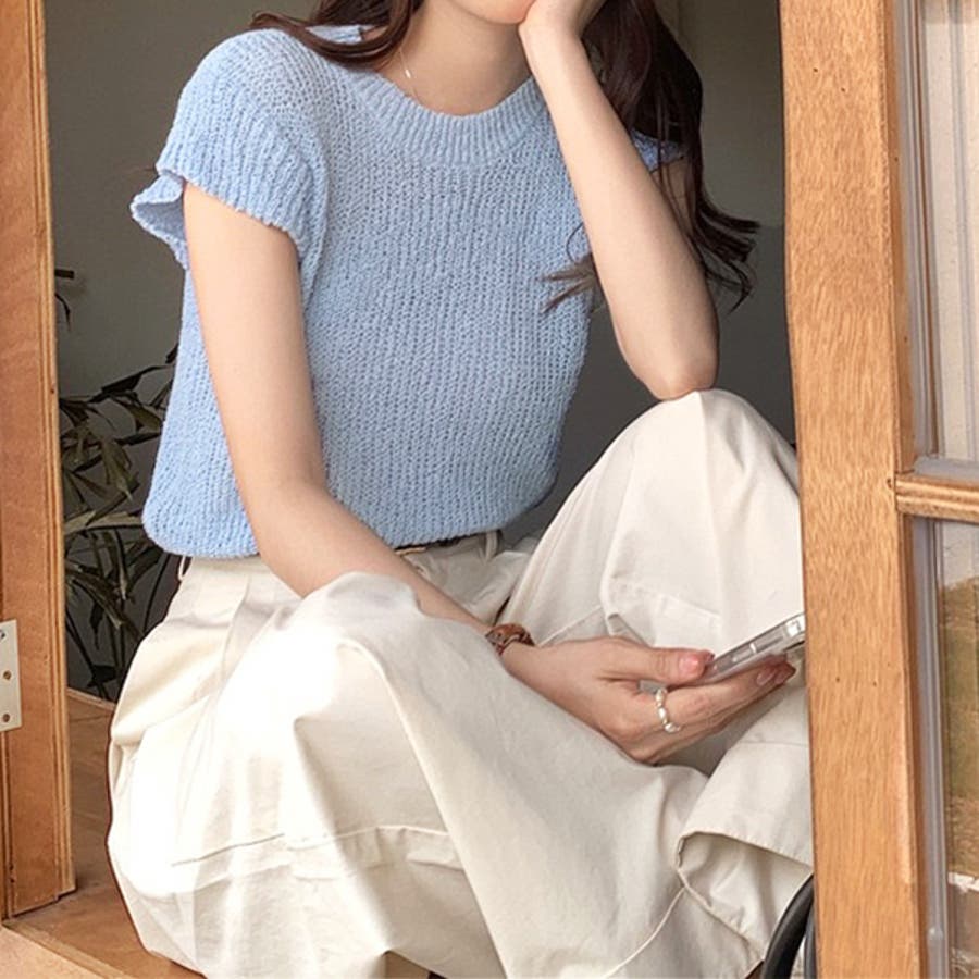 春 春コーデ 春ファッション 春服 夏 夏コーデ 夏ファッション 夏服 カジュアル カジュアルコーデ 大人 大人カジュアル オフィスカジュアル オフィス オフィスファッション オフィススタイル 韓国 韓国ファッション 韓国コーデ プチプラ プチプラファッション レディース Y2K 量産型 キレイめ 綺麗め きれい きちんと サマーニット 夏トップス ニット フレンチ カラーニット ショート丈 シンプル ショート丈ニット ライトブルー ブルー ライトグリーン グリーン ライトグレー グレー オフホワイト ホワイト 白 アイボリー ナチュラル ピンク ブラック 黒